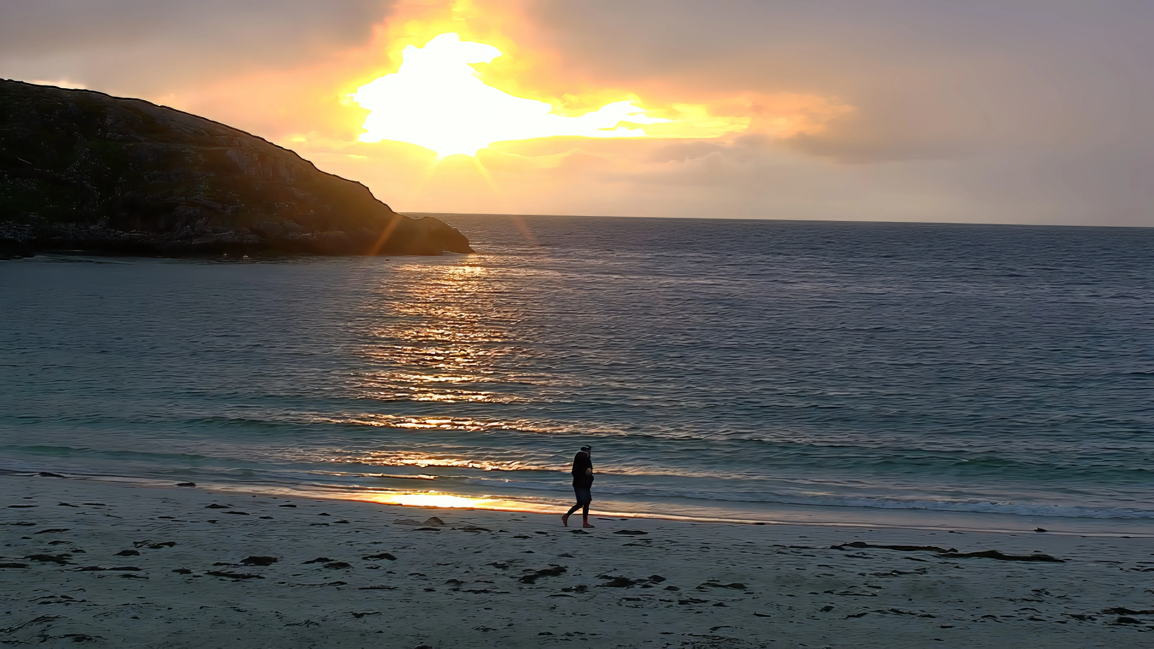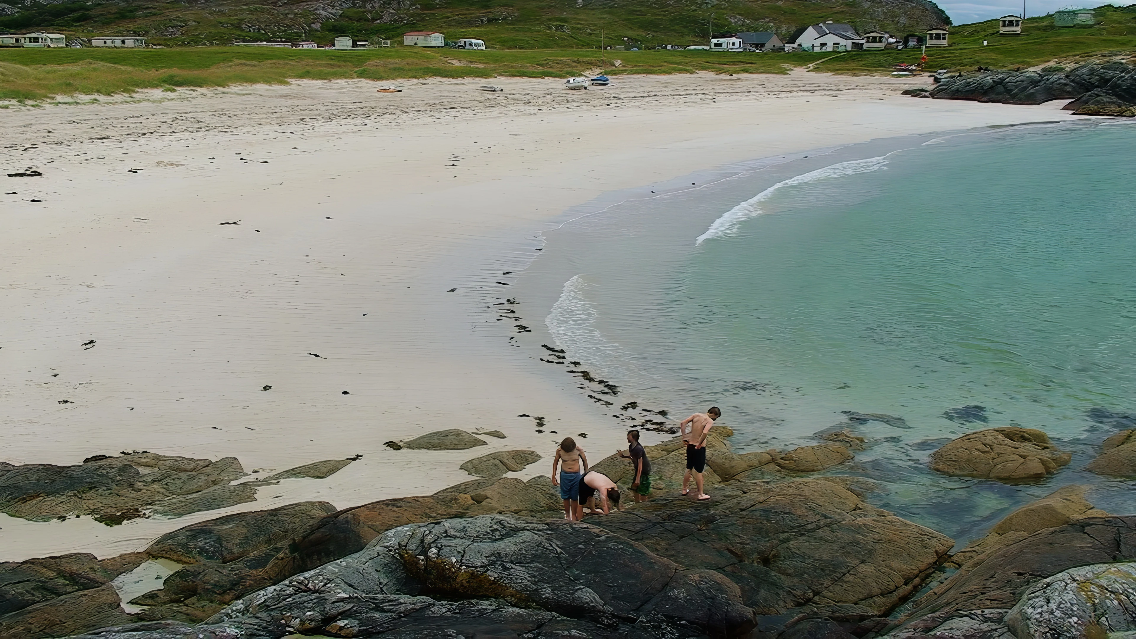 Racing down to Achmelvich’s silver-sand beach before supper.
