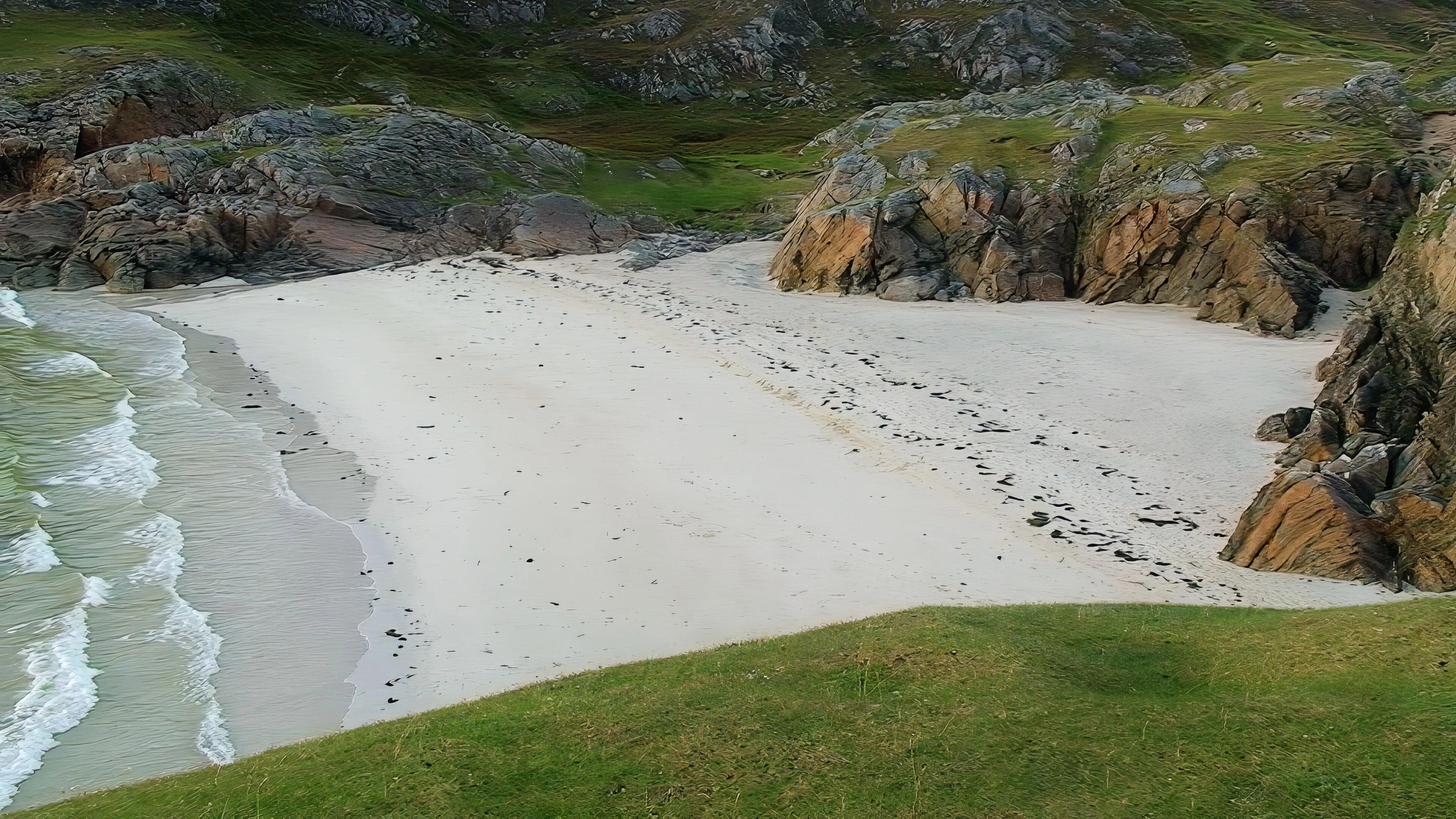 Sandcastle building slowly transforms Achmelvich’s second beach.