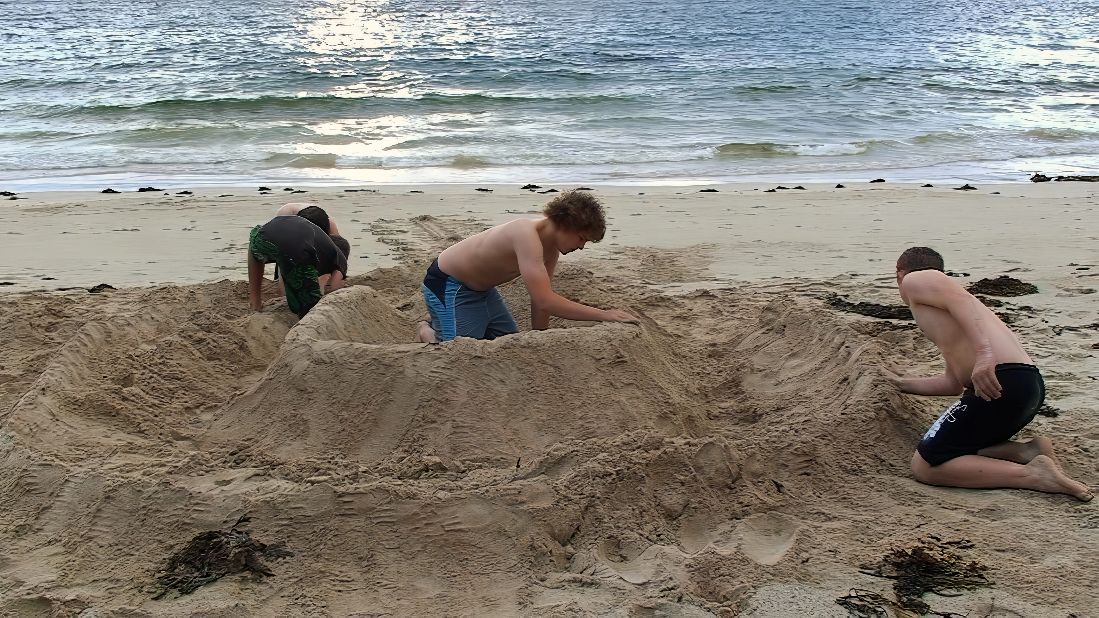 Intrepid sand-fortress builders at work on Achmelvich’s secluded beach.