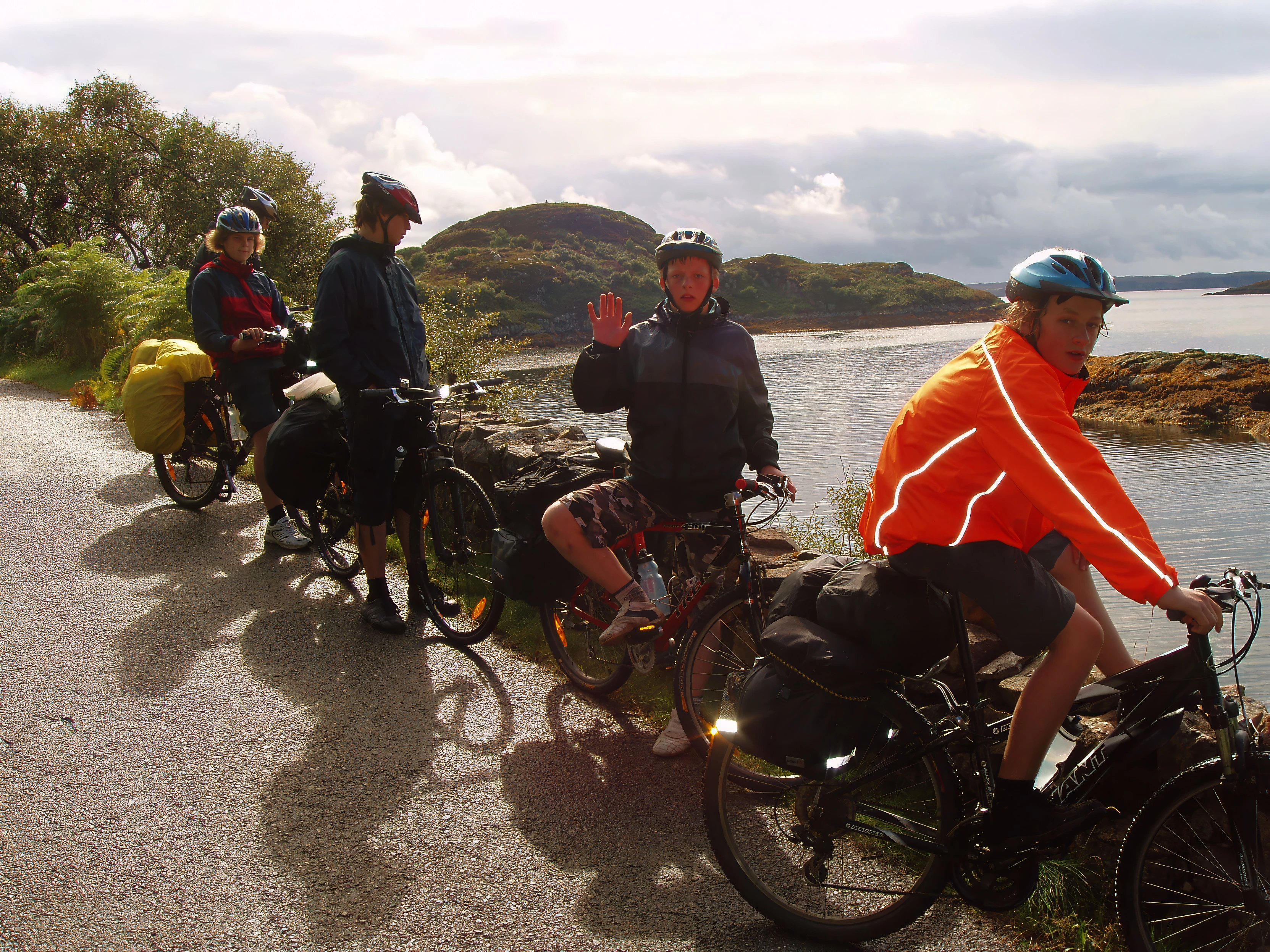 About to leave Achmelvich Youth Hostel, our annexe dorm behind us