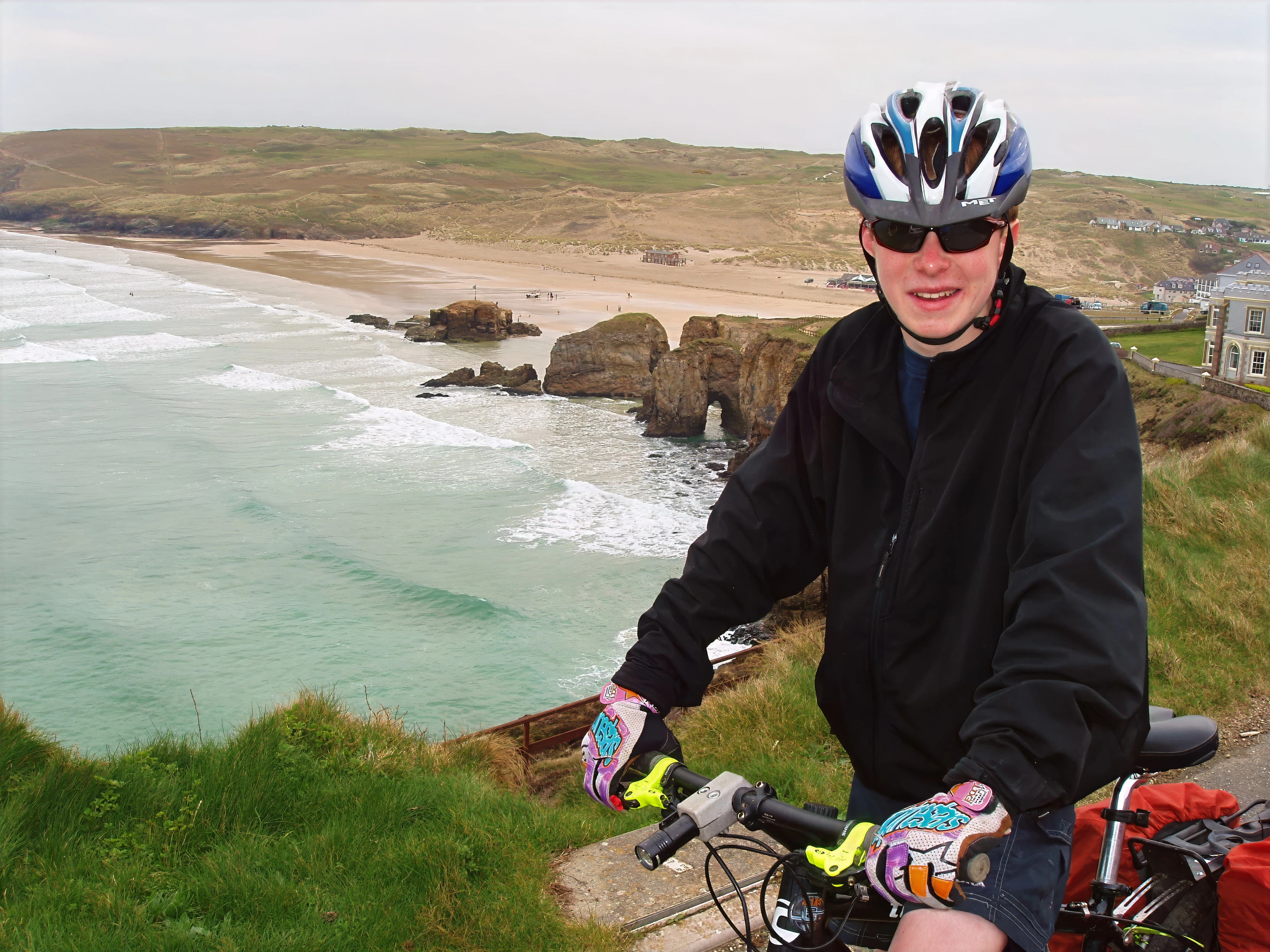 Joe near the hostel, overlooking Perranporth Beach.
