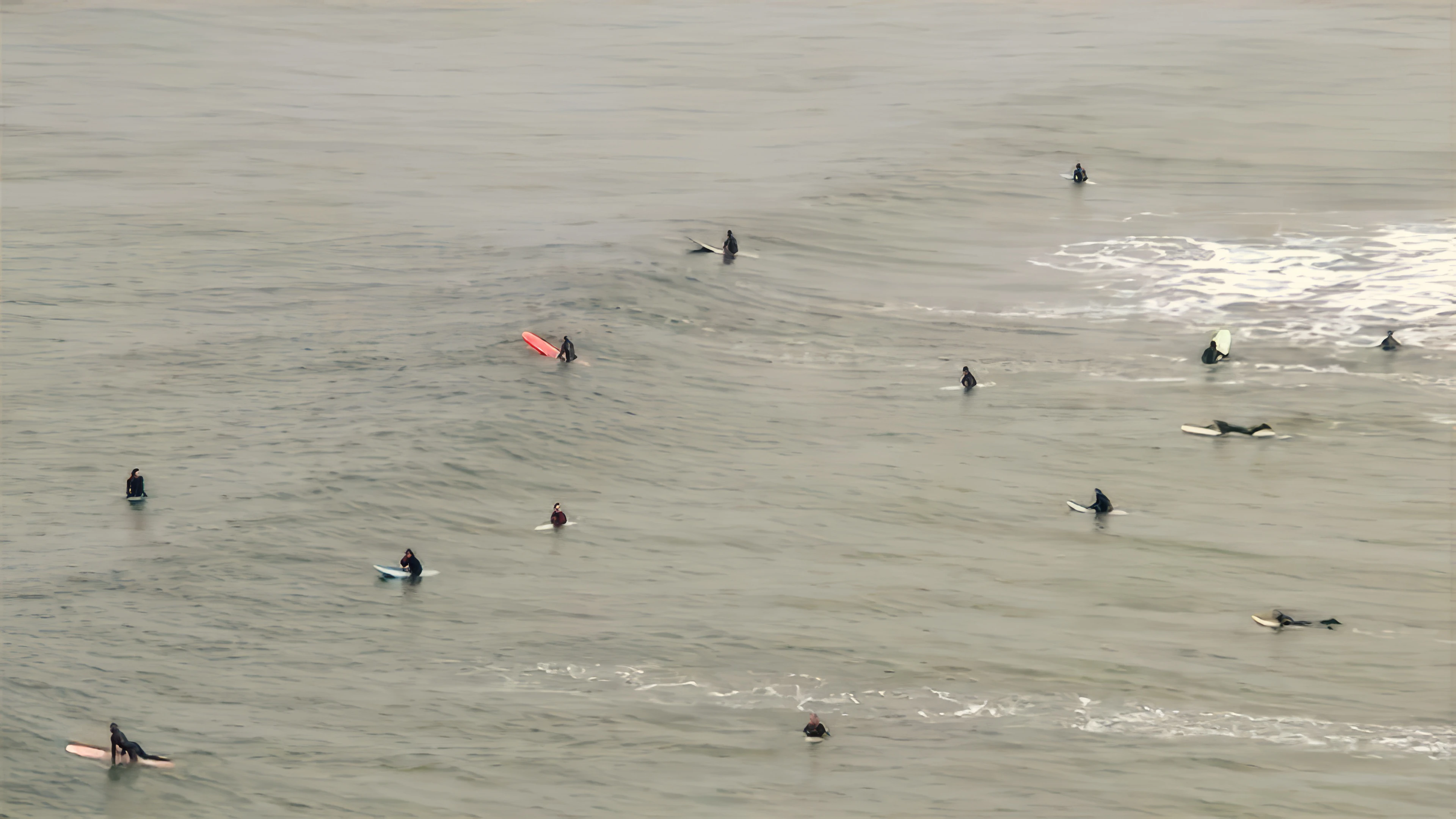 Loads of surfers at Perranporth, seen from near the hostel.