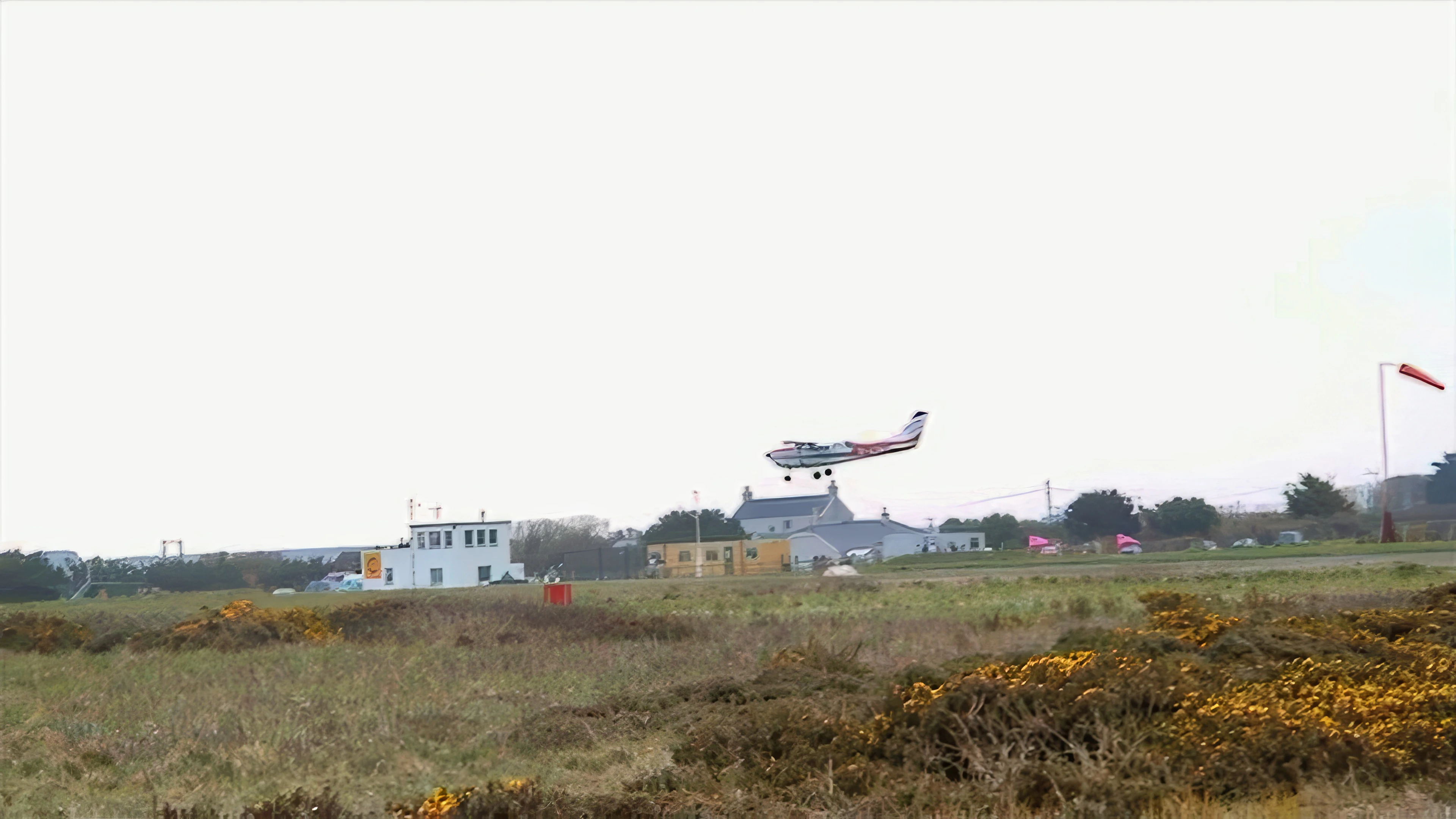 Light aircraft coming in to land at Perranporth Airport.
