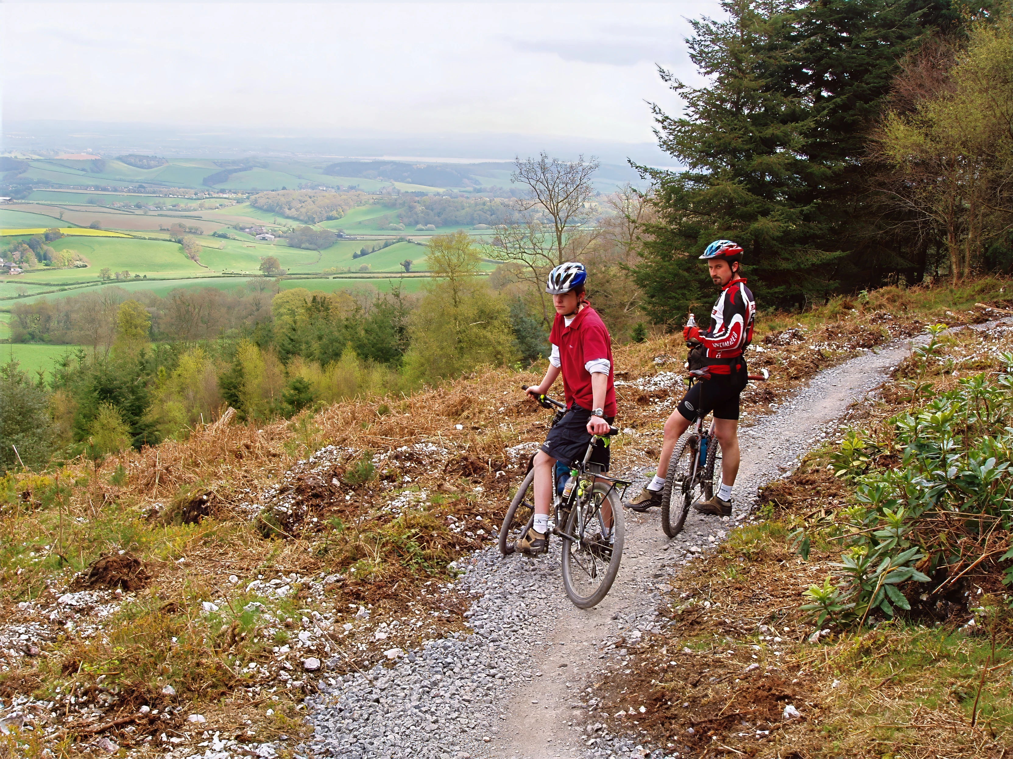 Josh and Dennis in the lofty upper reaches of Hembury Woods.