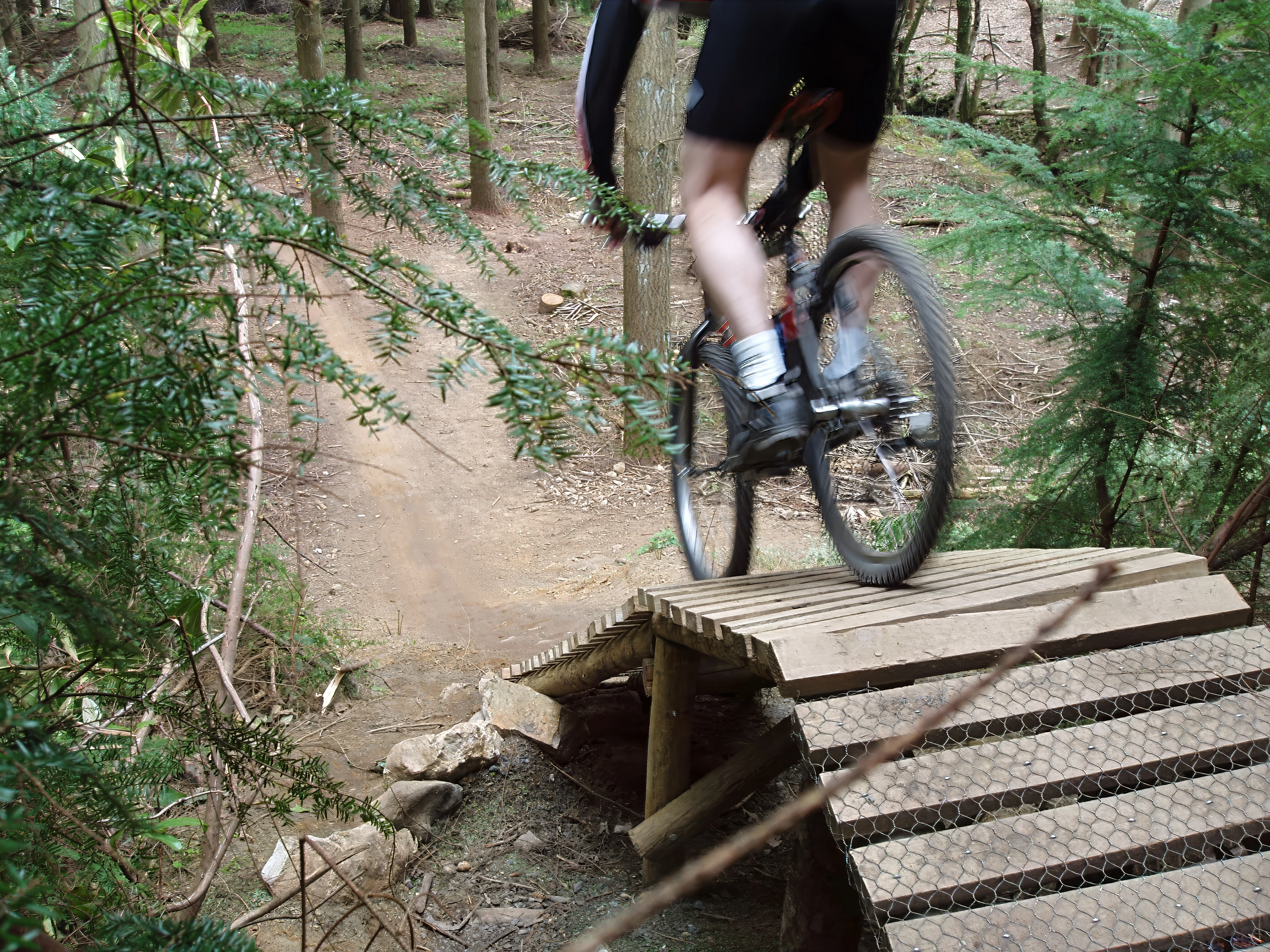 Tao tackles the black-run ramp at the new Haldon Forest Park.