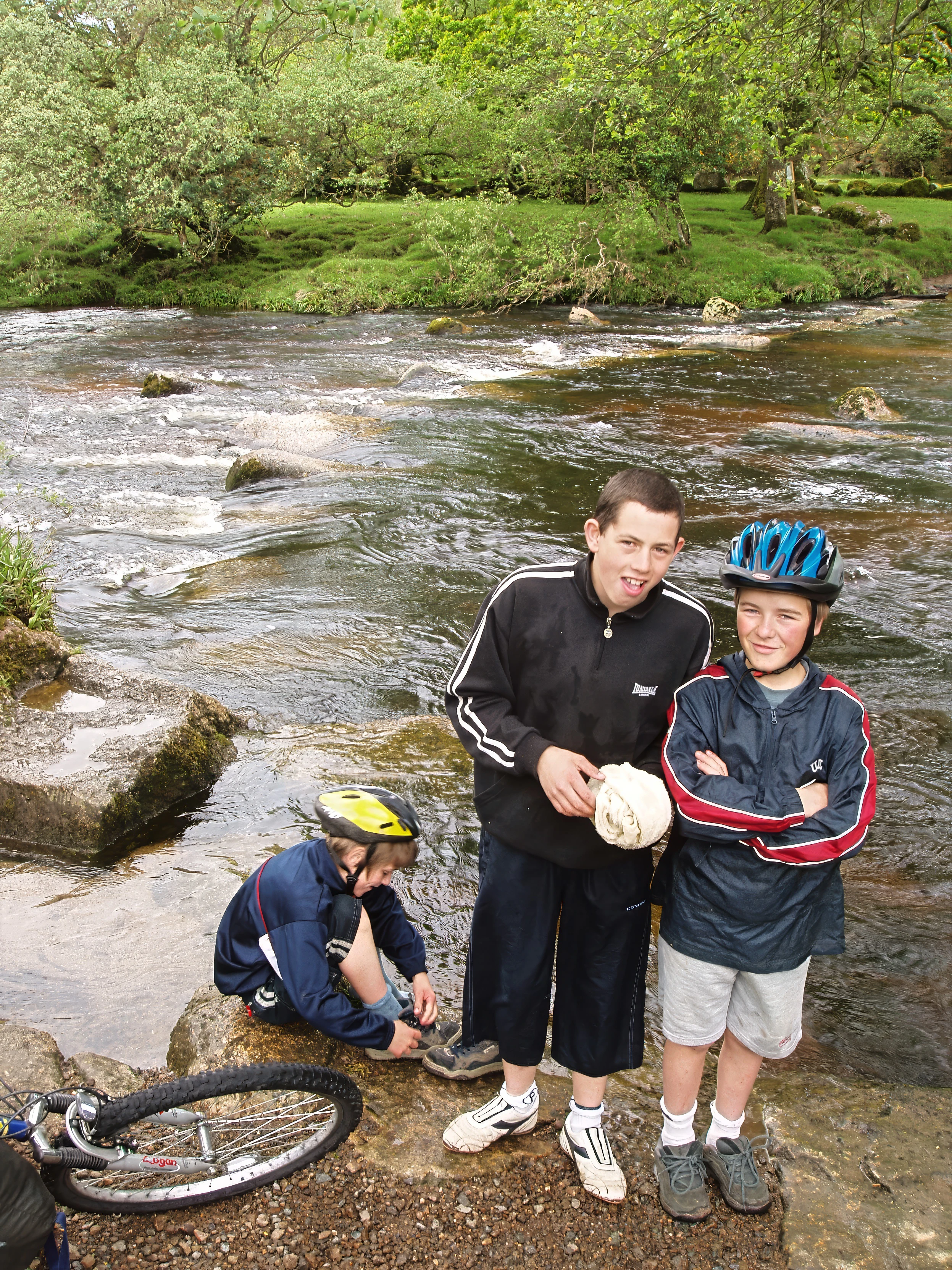 Dennis, Jack and Josh after braving the flooded stepping stones at Dartmeet.