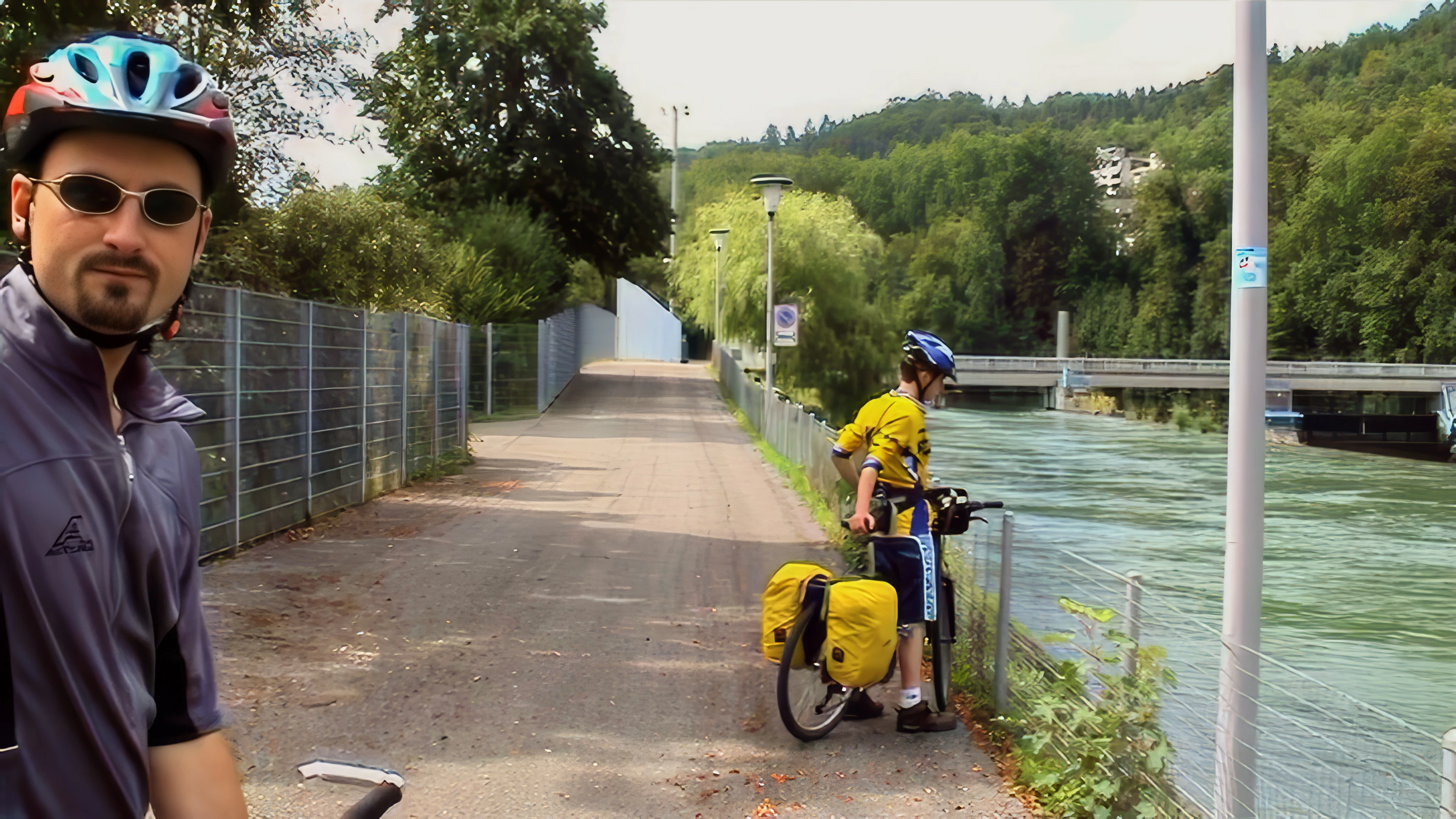 Tao and Joe on Route 5 at Rathausgasse, Baden, 8.7 miles in.