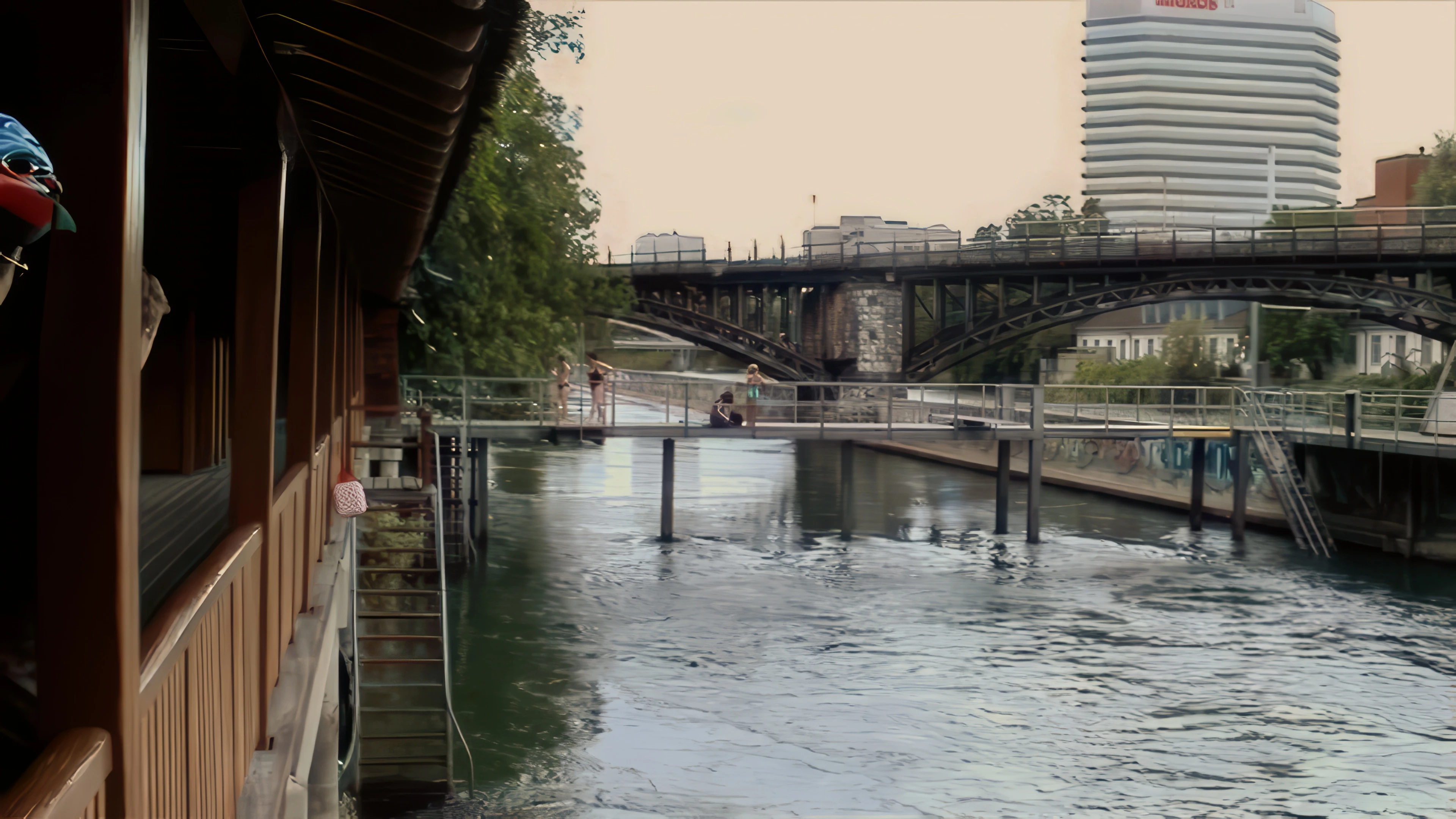 Flussbad public swimming provided great entertainment on the way into Zurich, 24.5 miles from Brugg hostel.
