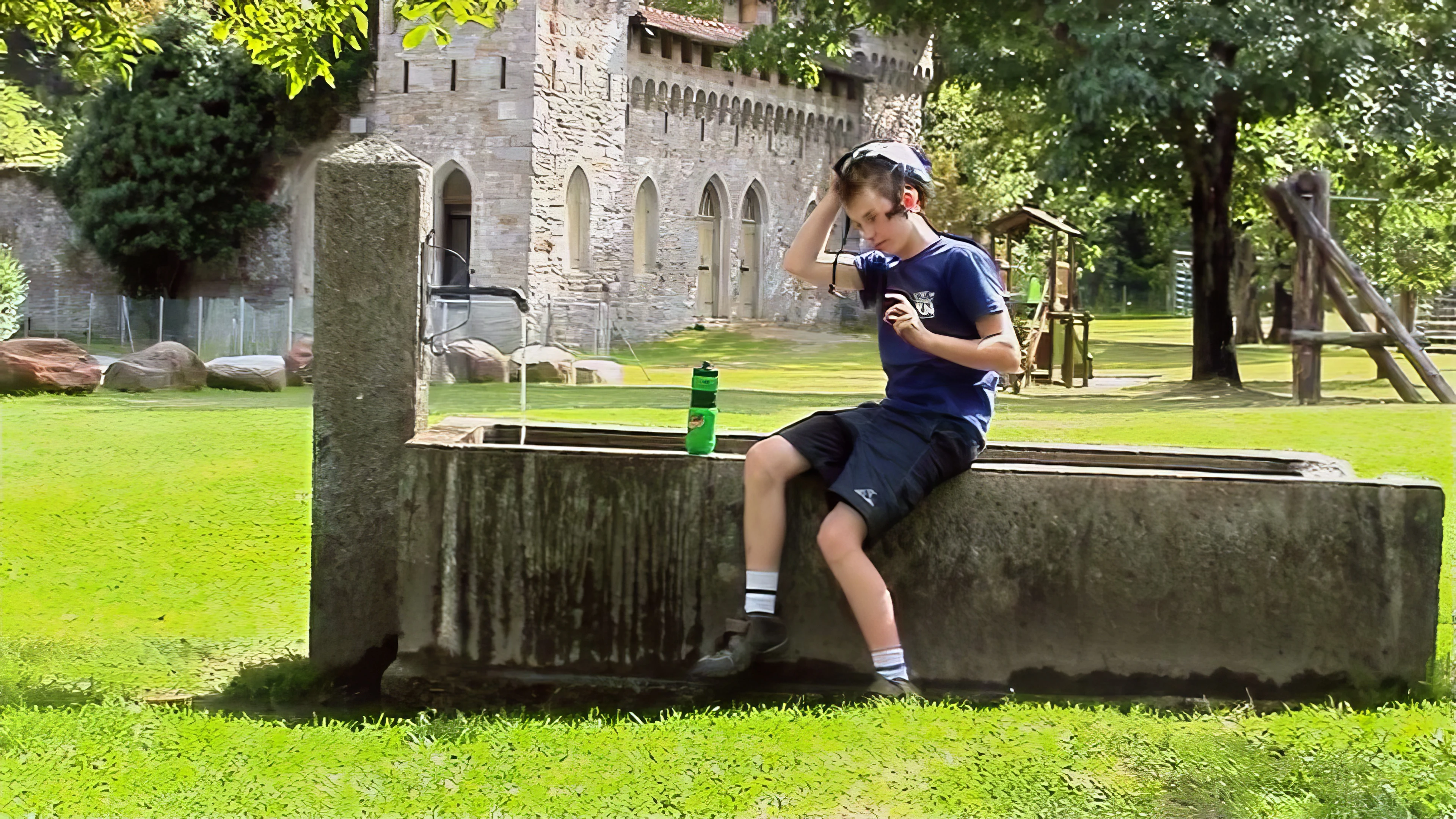 Michael cools off at Via Gerra playground, Faido
