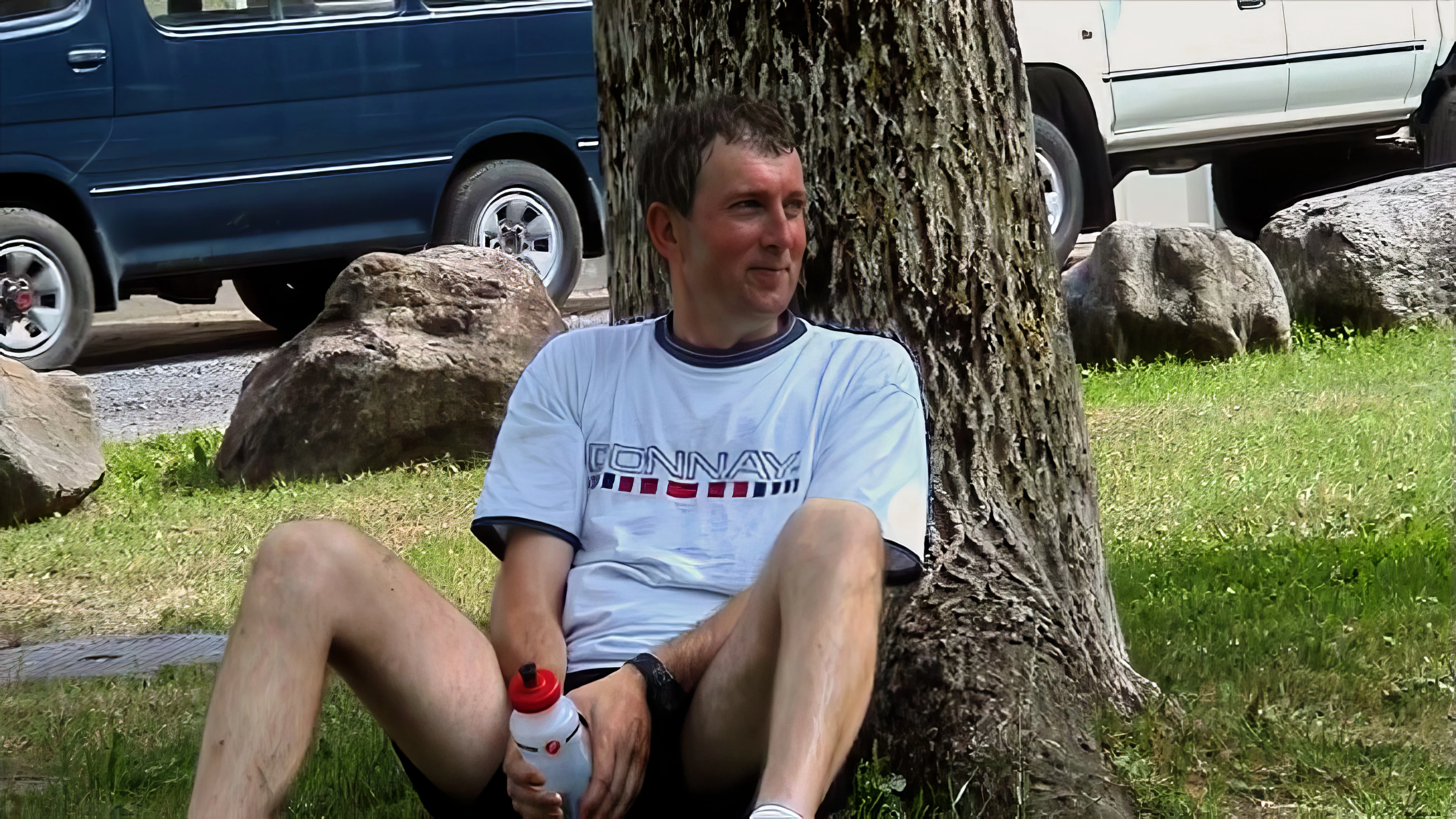 Joe ponders a cool-down at Via Gerra playground, Faido—31.5 miles in