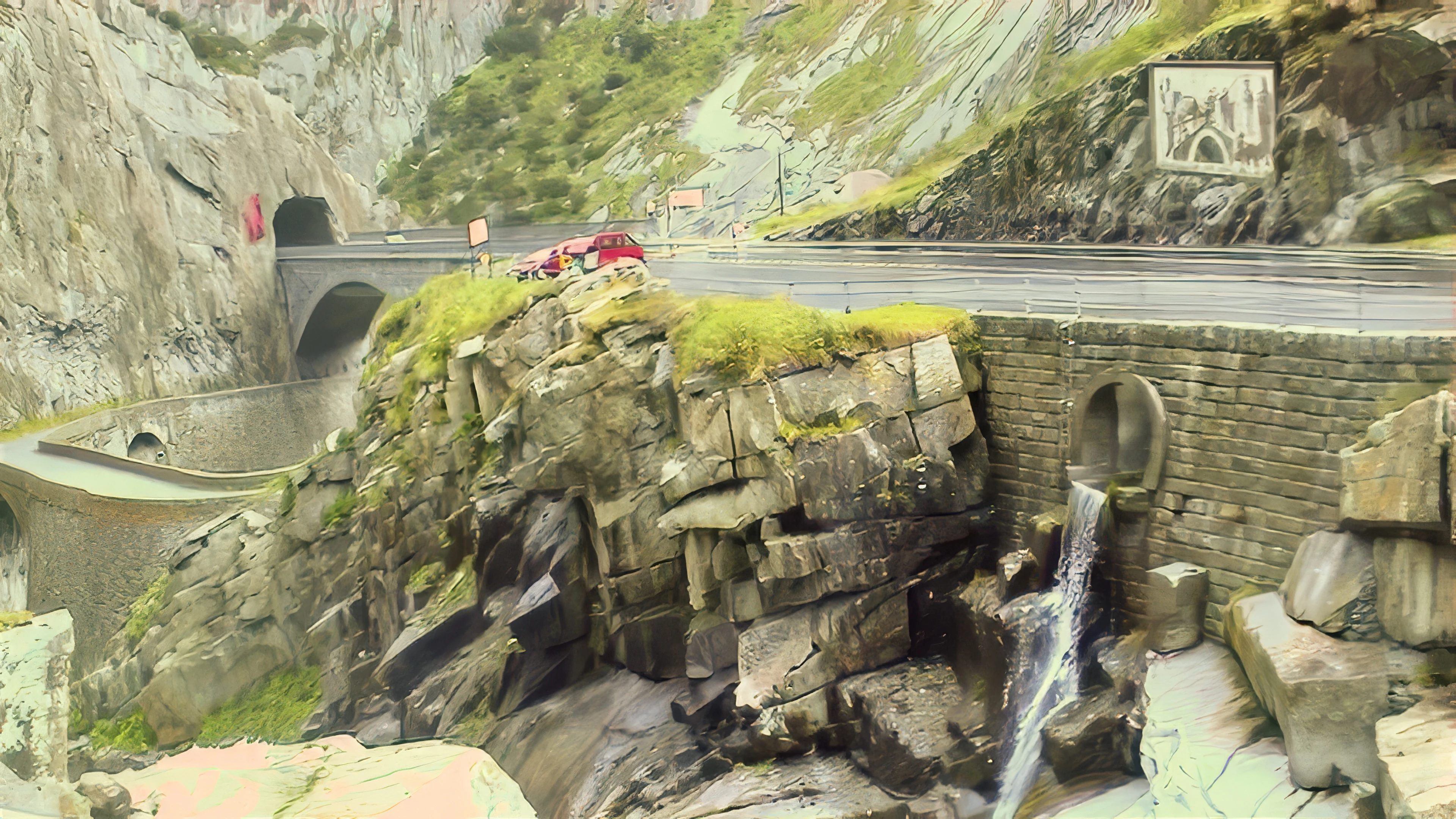 Tunnels and roads everywhere as the train approaches Andermatt