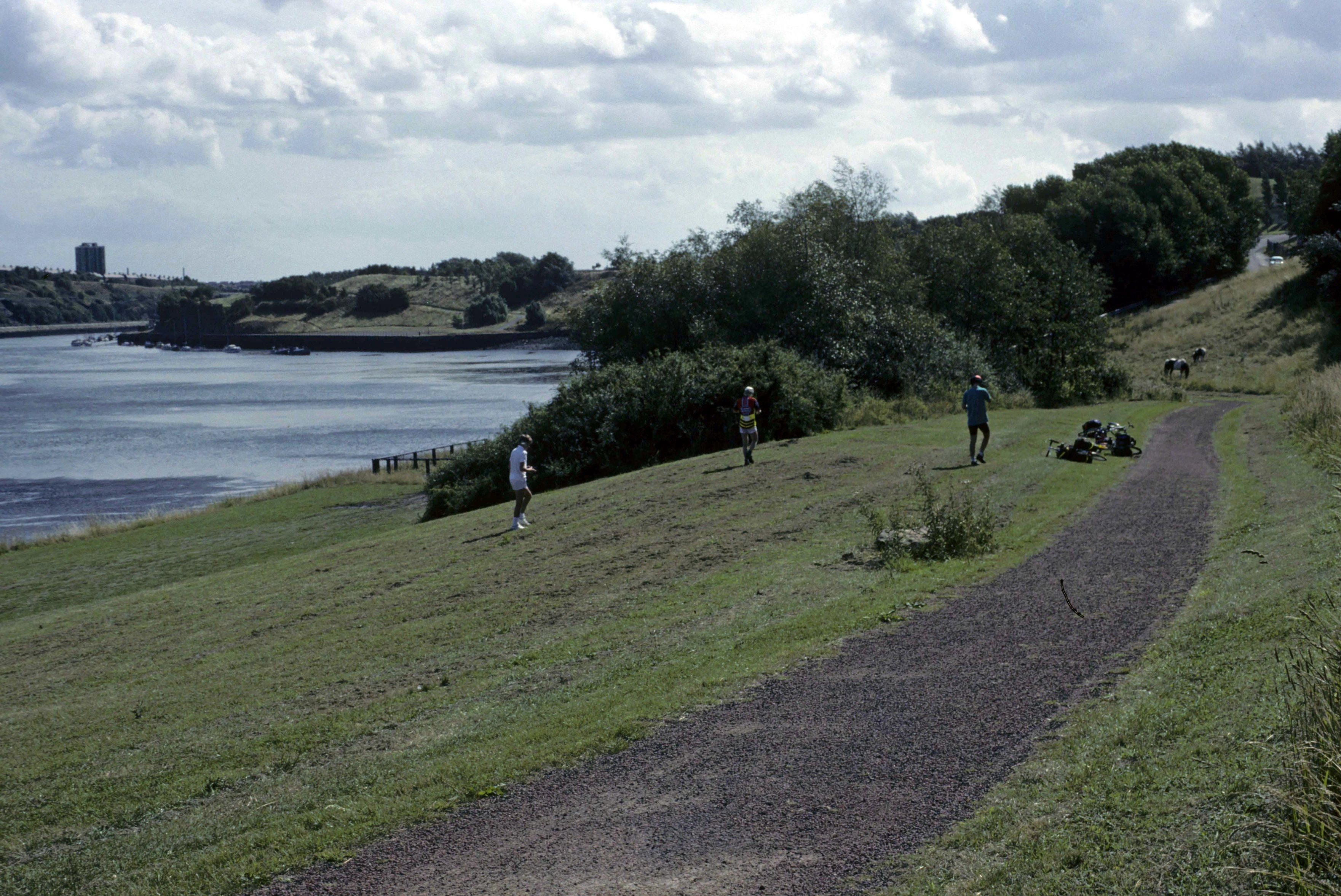 Frisbee break on the grassy south bank of the Tyne at Gateshead.