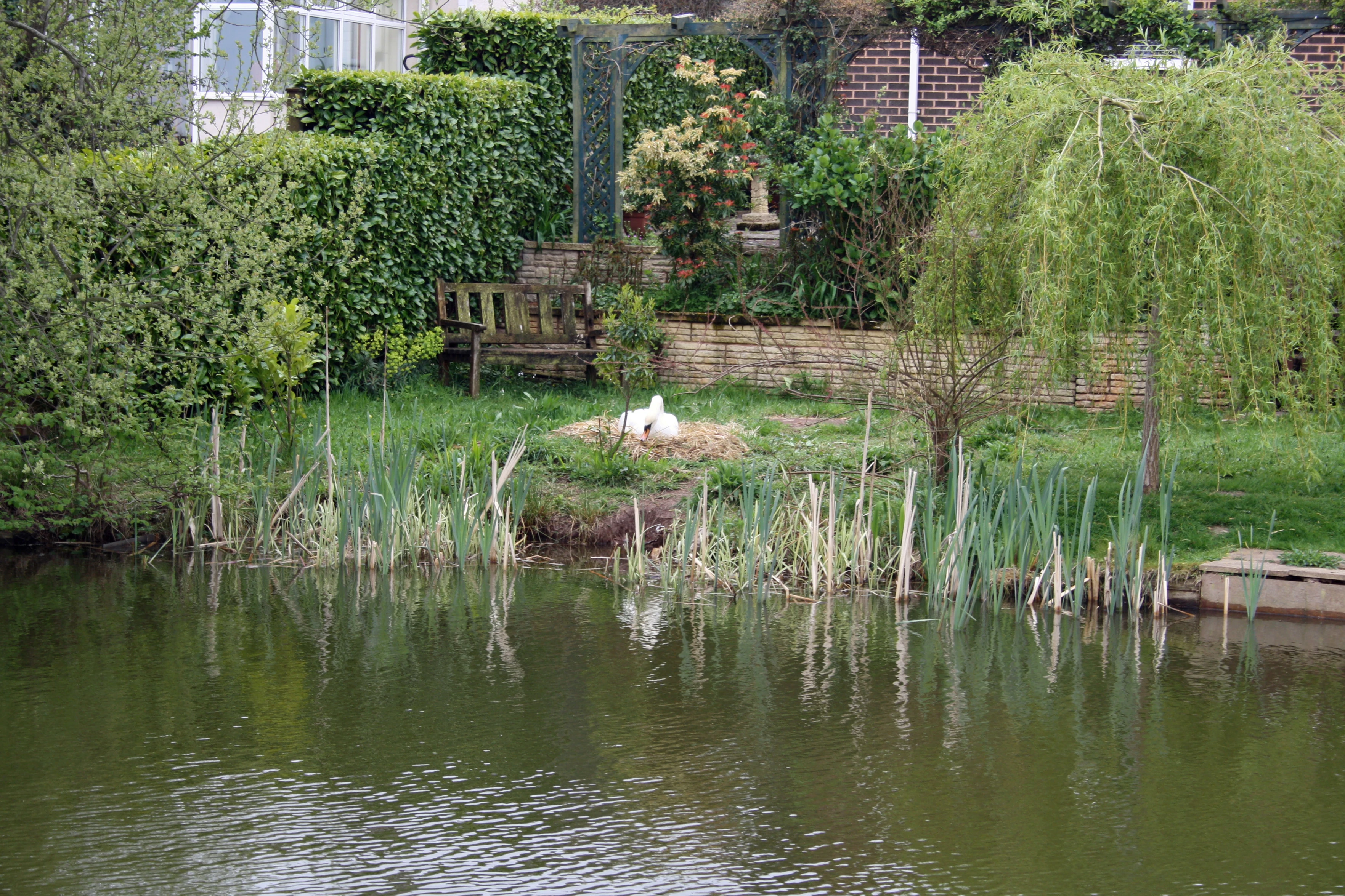 A nesting swan in a private Tiverton garden.