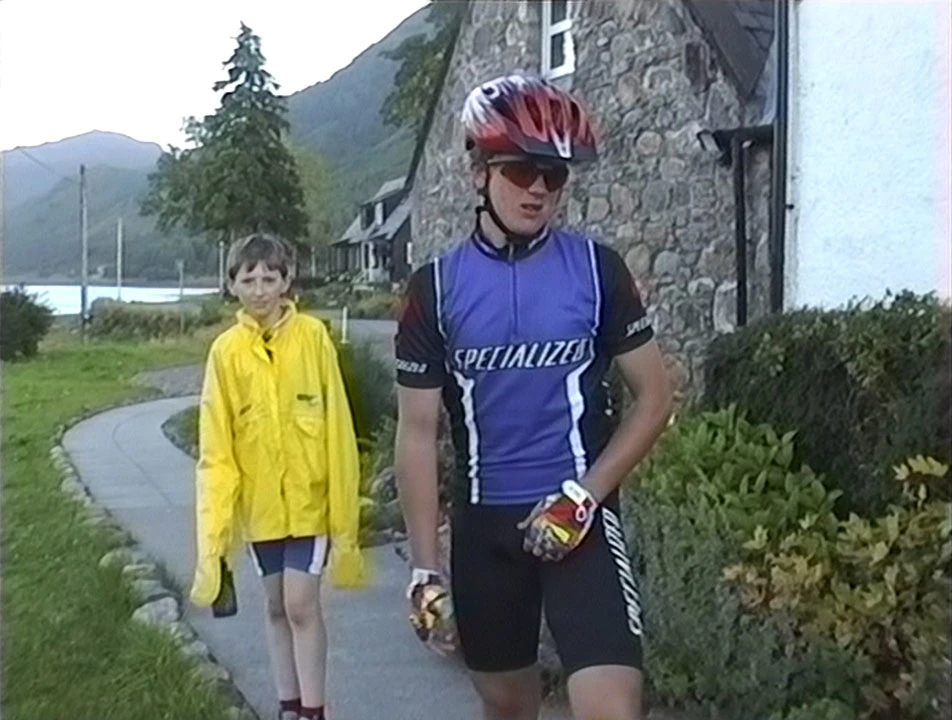 Andrew and Gavin lug panniers to Ratagan Youth Hostel reception.