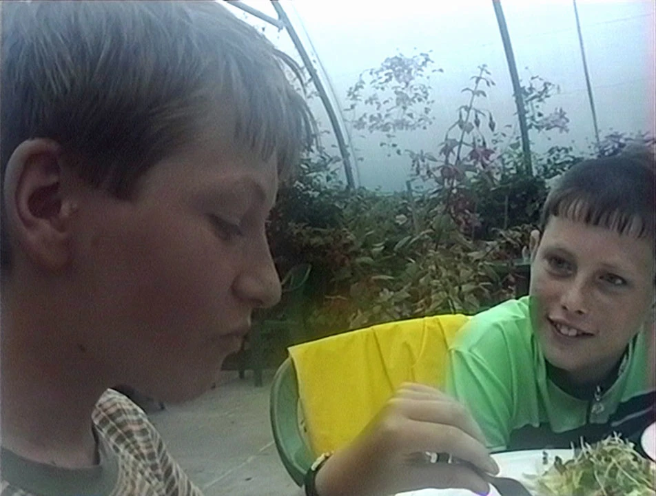 Andrew enjoys his evening meal at Applecross Campsite, watched closely by Dominic.