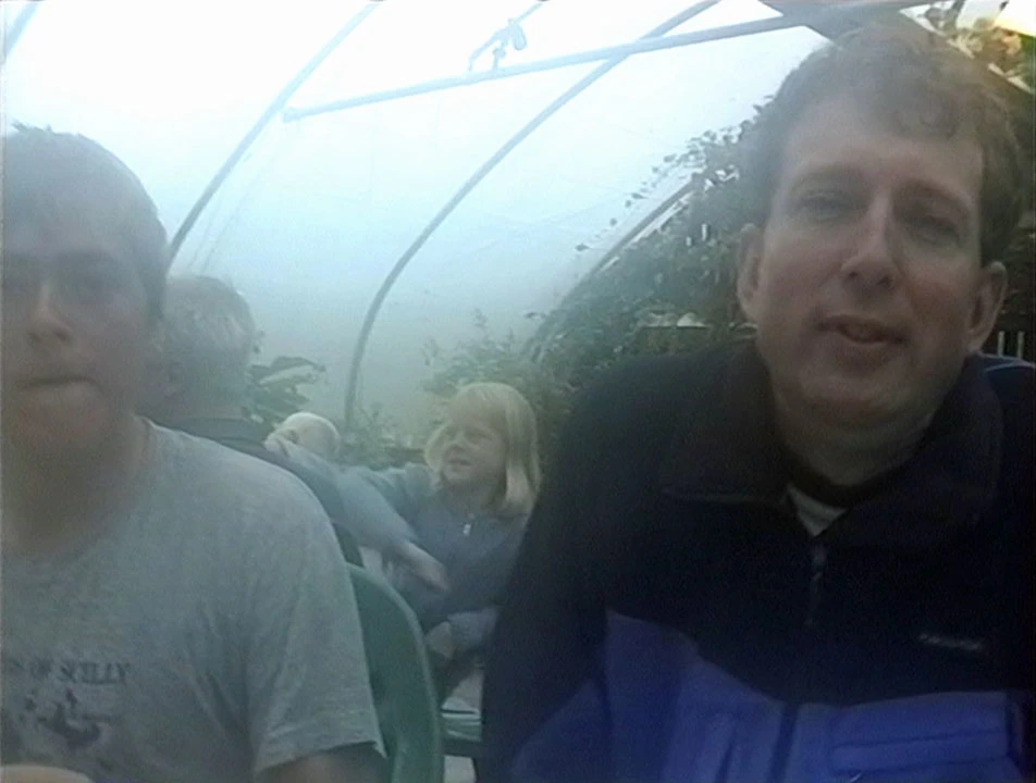 Michael feels better after a hot meal at Applecross Campsite—still a bit chilly.
