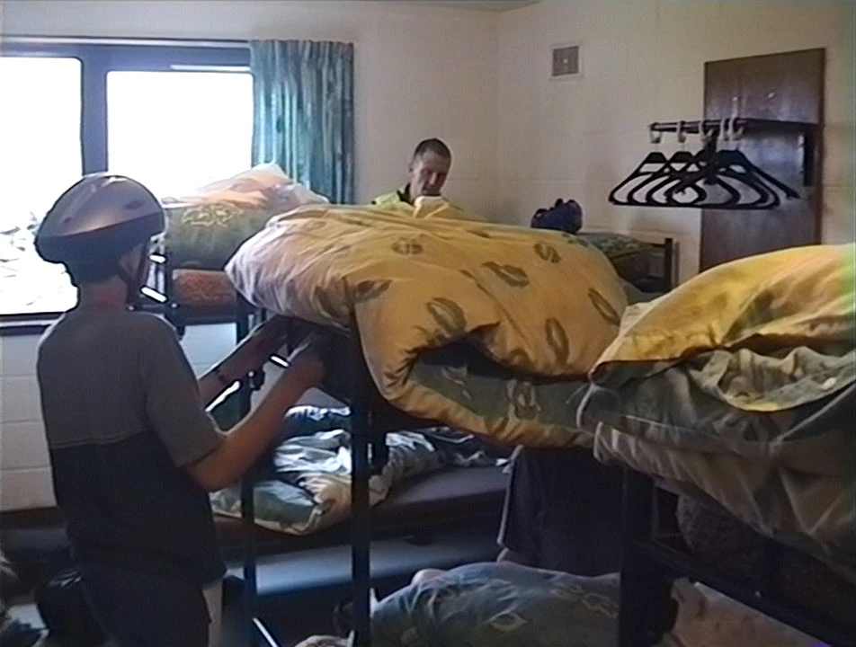 Tidying duvets in our dorm at Torridon Youth Hostel.