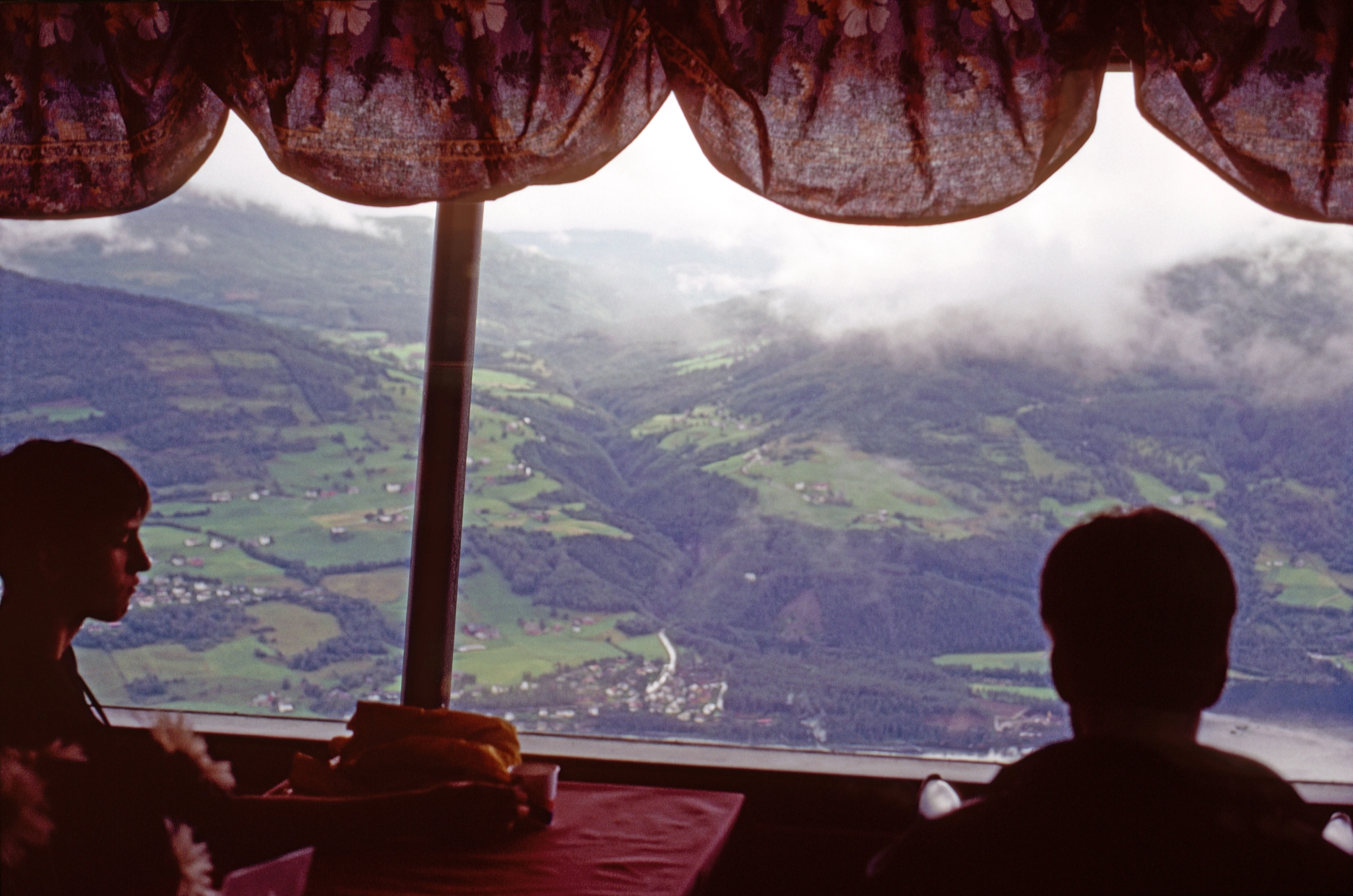 Panoramic view from the café atop Mount Hangur, over the valley beyond Voss.