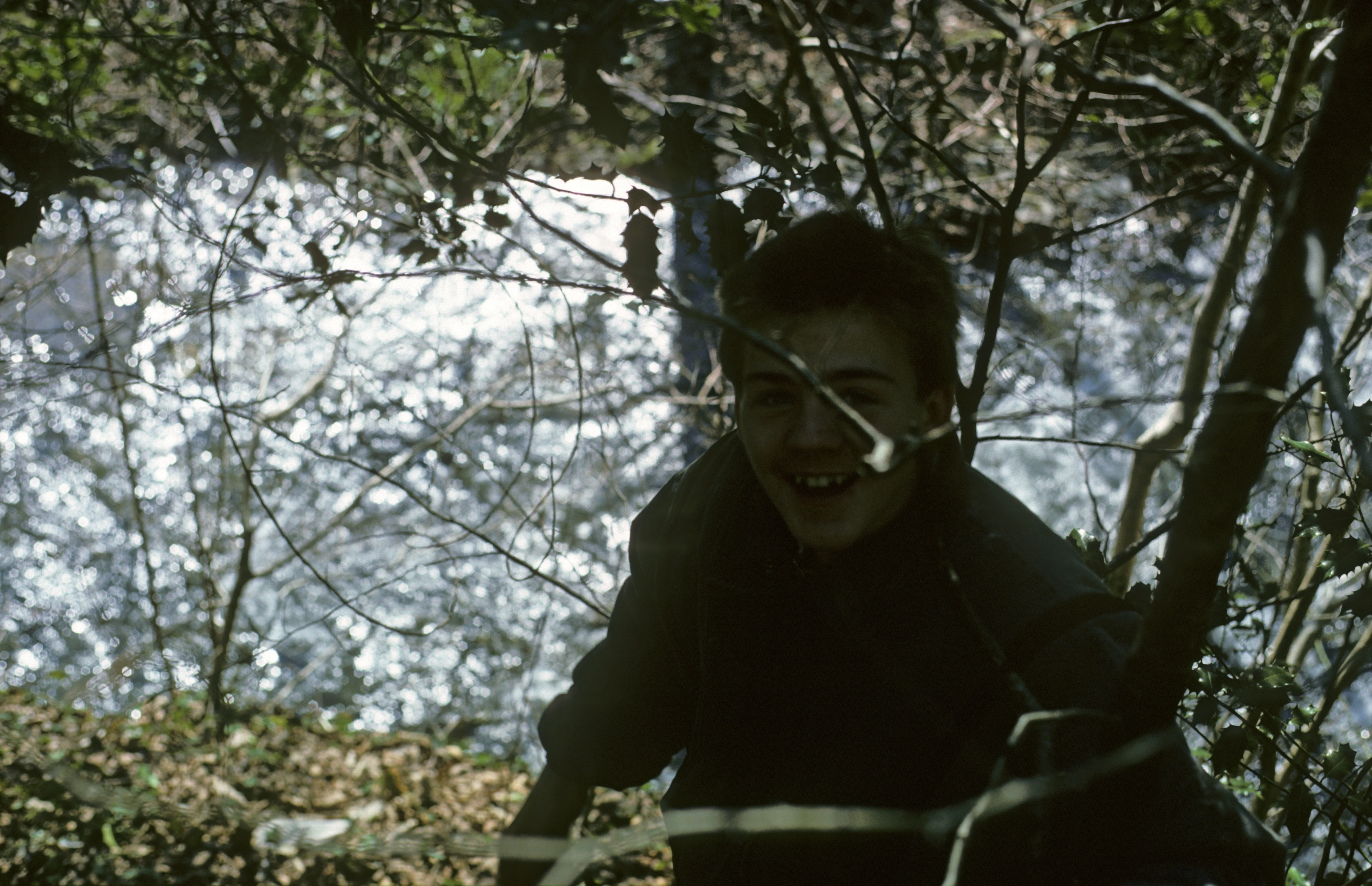 Paul Williams by the River Heddon, grinning as sunlight dances on the water below Broadoak Hill.