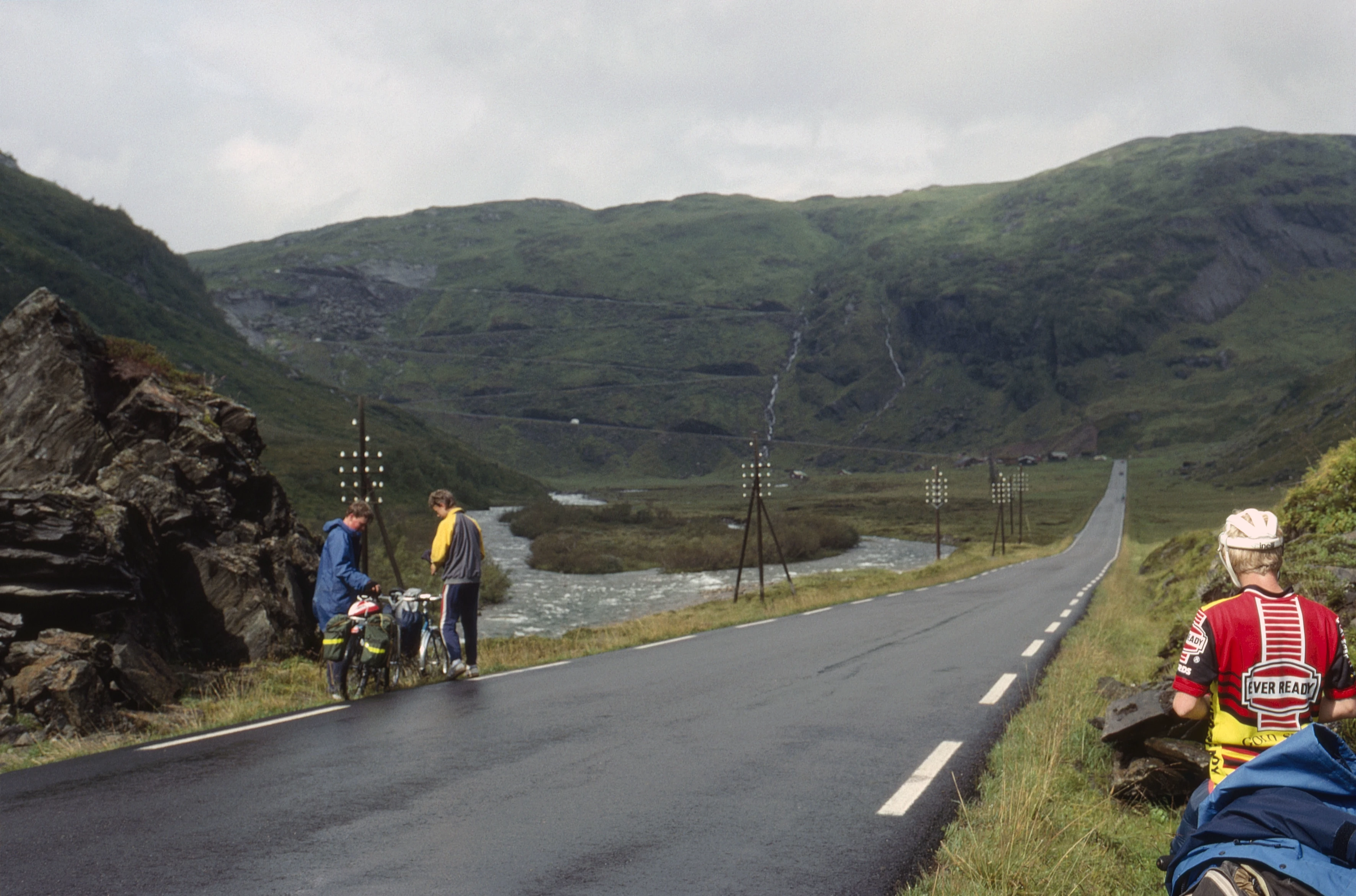 First glimpse of today’s big climb, Halsabakkane hairpins, Storelvi rushing towards us.