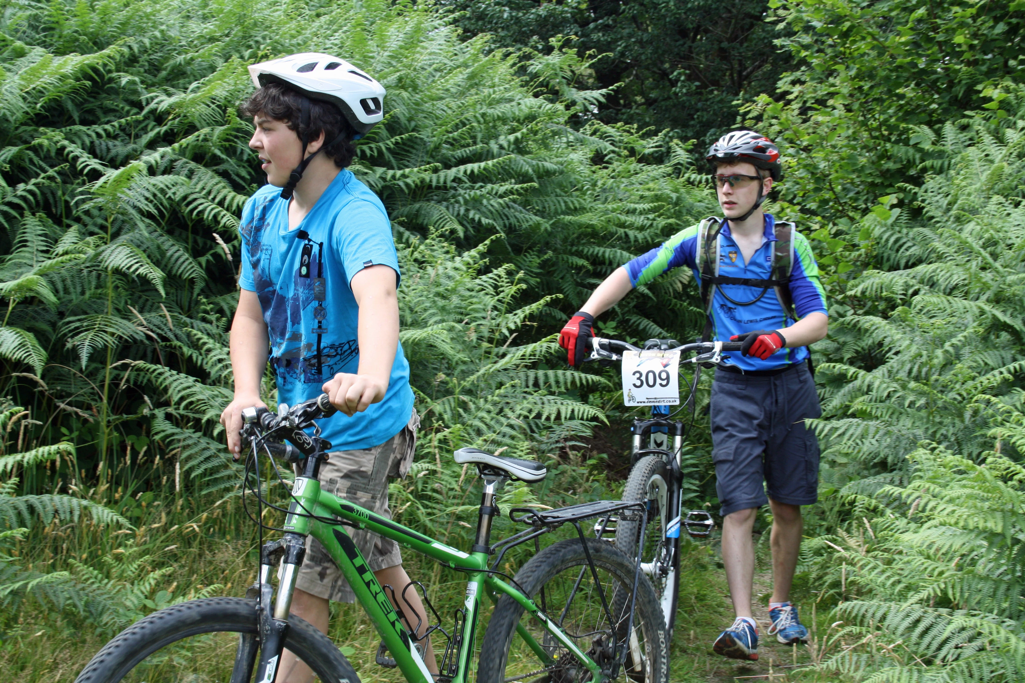 Lawrence and Arthur emerge from the Hembury Fort moat.