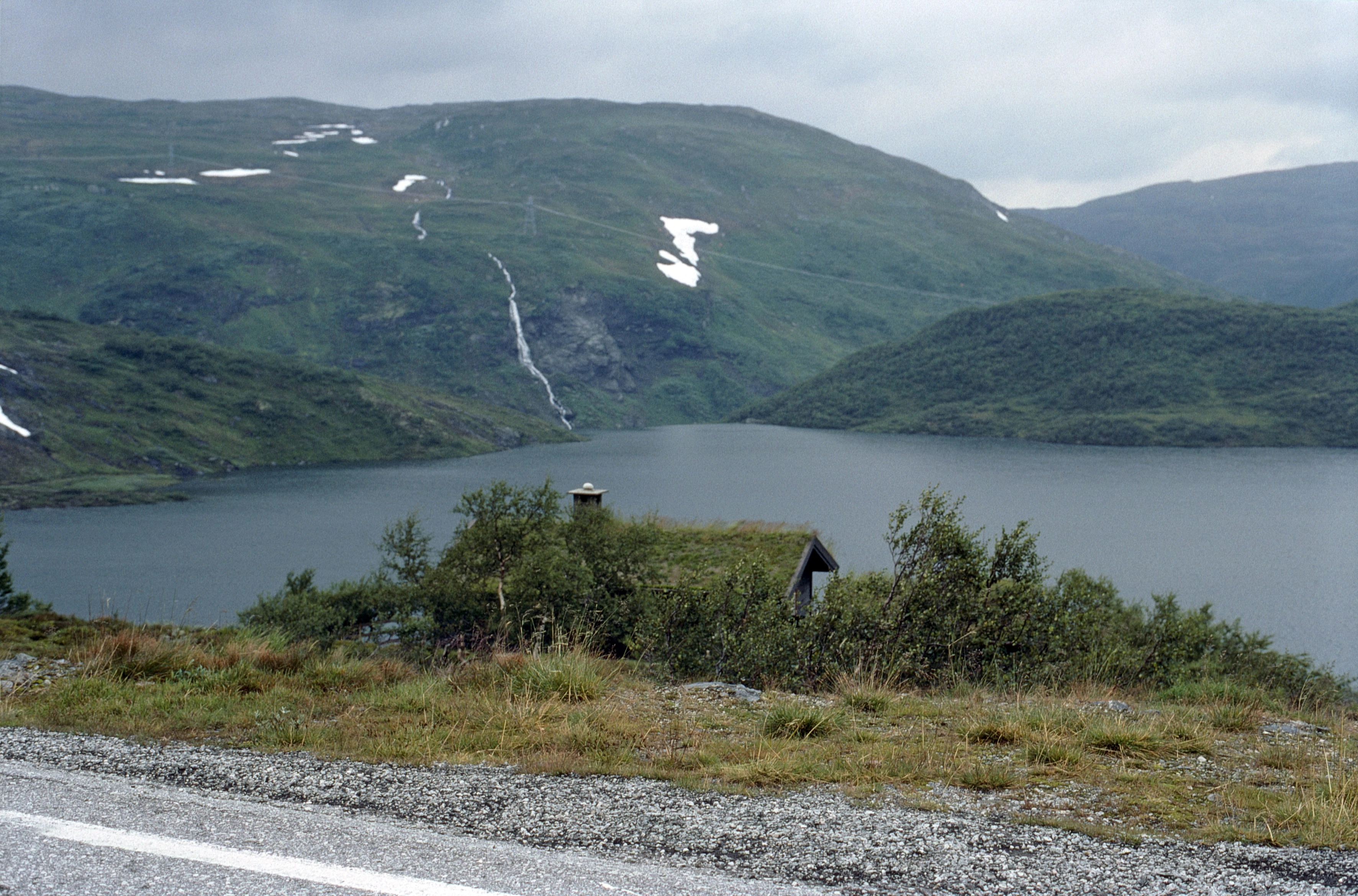 A typical grass‑roofed house overlooking Målsetevatnet.