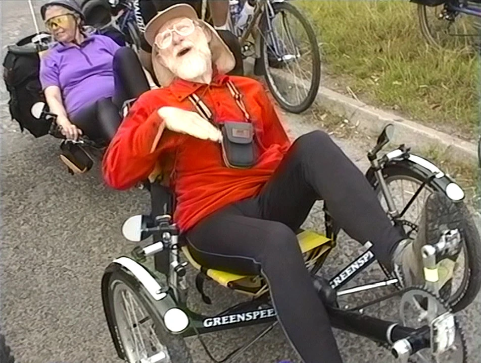 A jolly couple discuss adventures on their recumbent tandem at North Kessock, 37.5 miles from Carbisdale