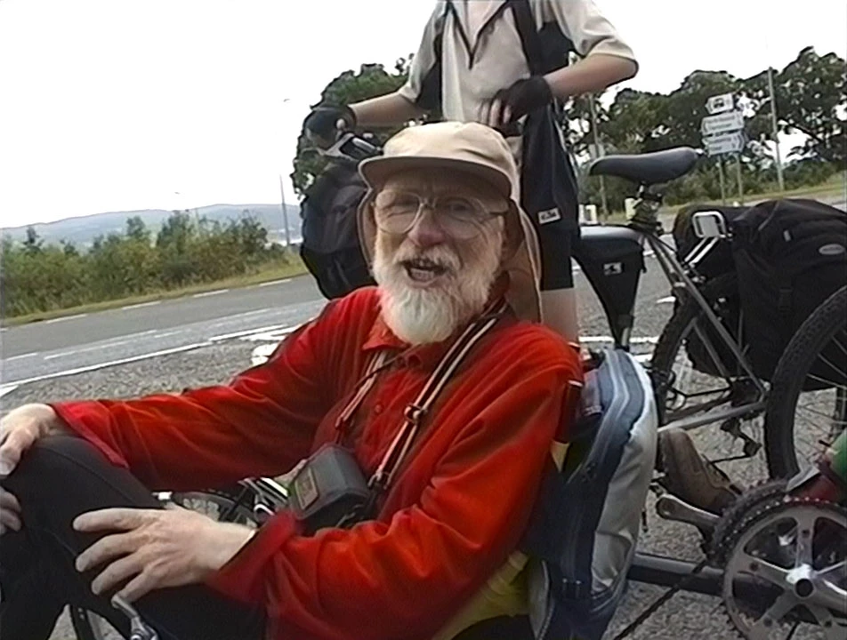 A jolly couple discuss adventures on their recumbent tandem at North Kessock, a few miles from Inverness