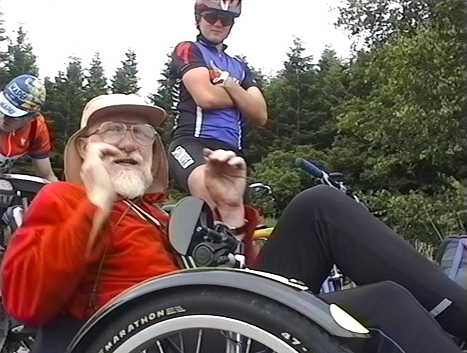 Swapping stories with a jolly recumbent tandem duo at North Kessock, near Inverness
