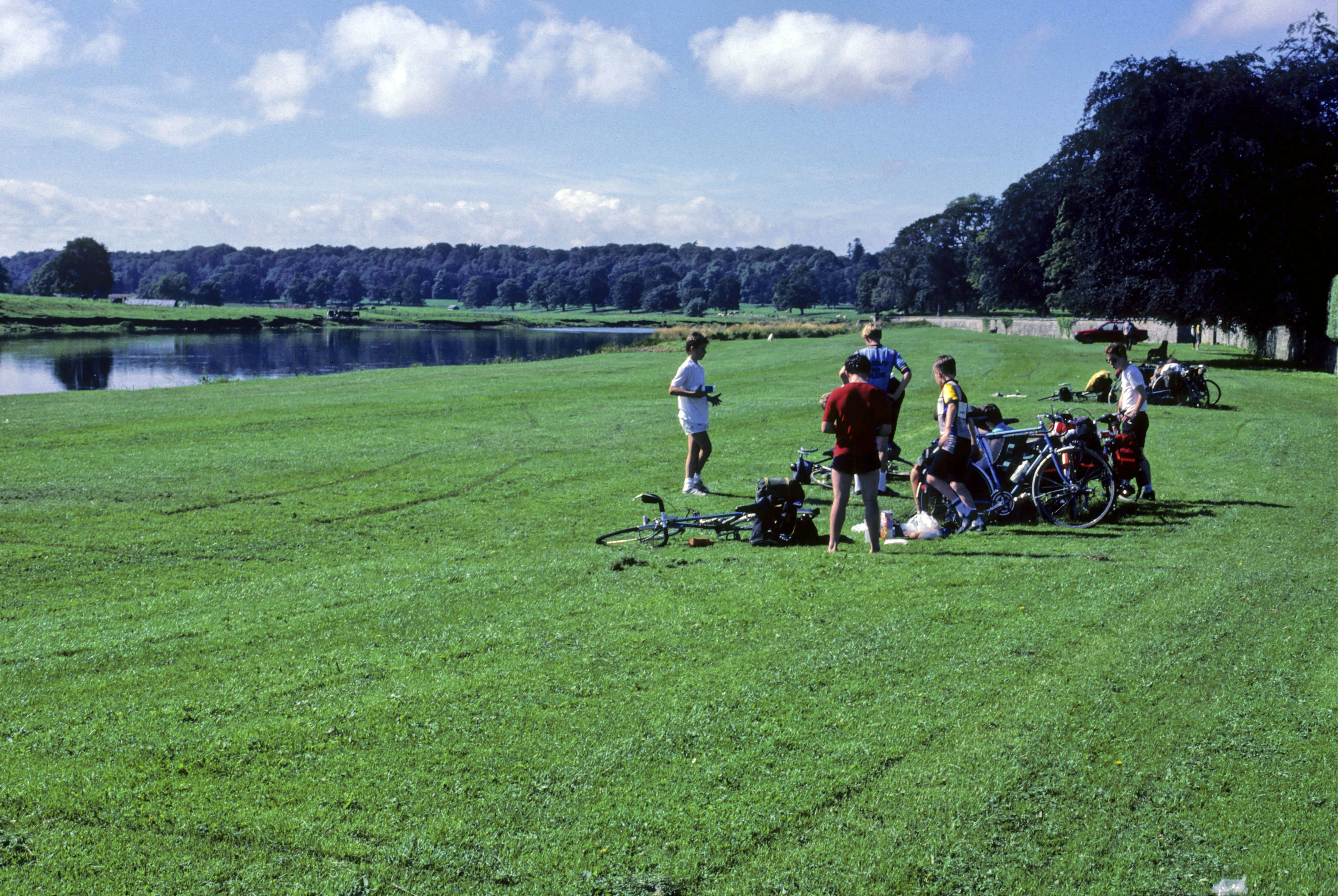 Lunch on The Cobby park’s riverside lawns at Kelso, with Floors Castle across the Tweed.