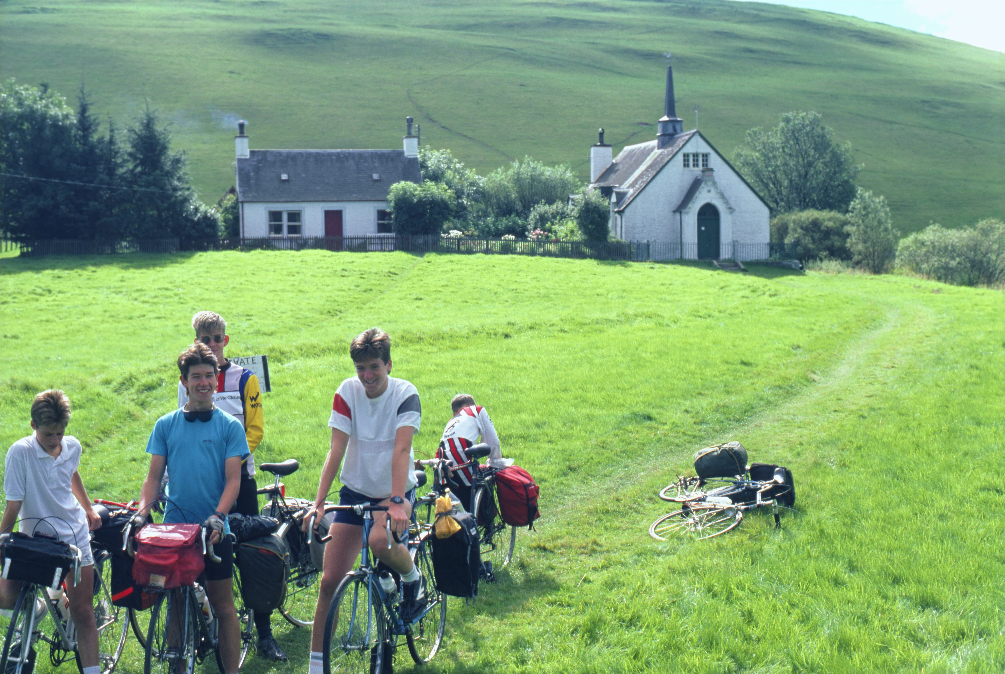 Aidan, Brett, Graham, Mark and Michael ready to roll from Snoot’s chapel hostel on a sunny morning.