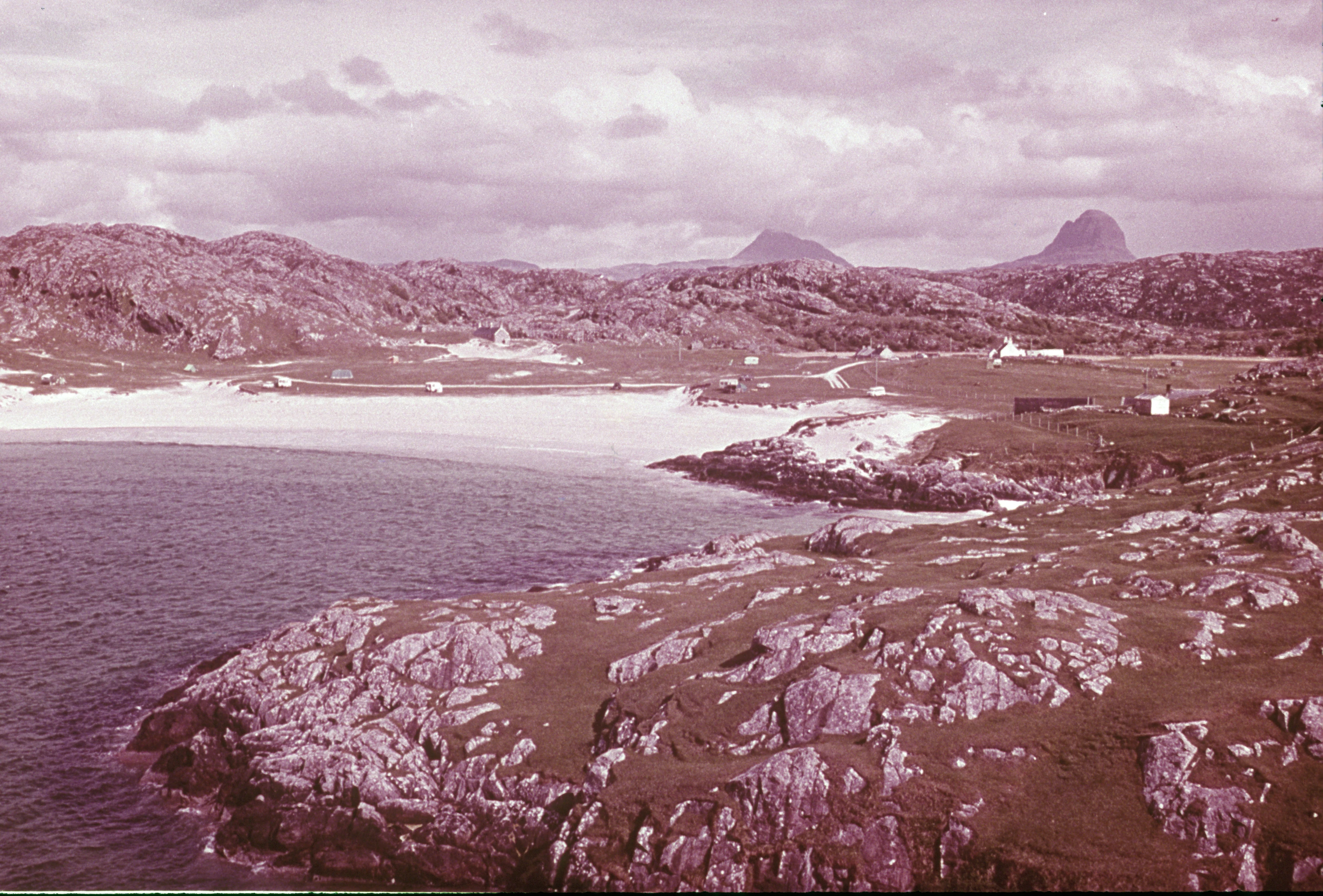 A purchased slide of Achmelvich beach with the hostel in the distance