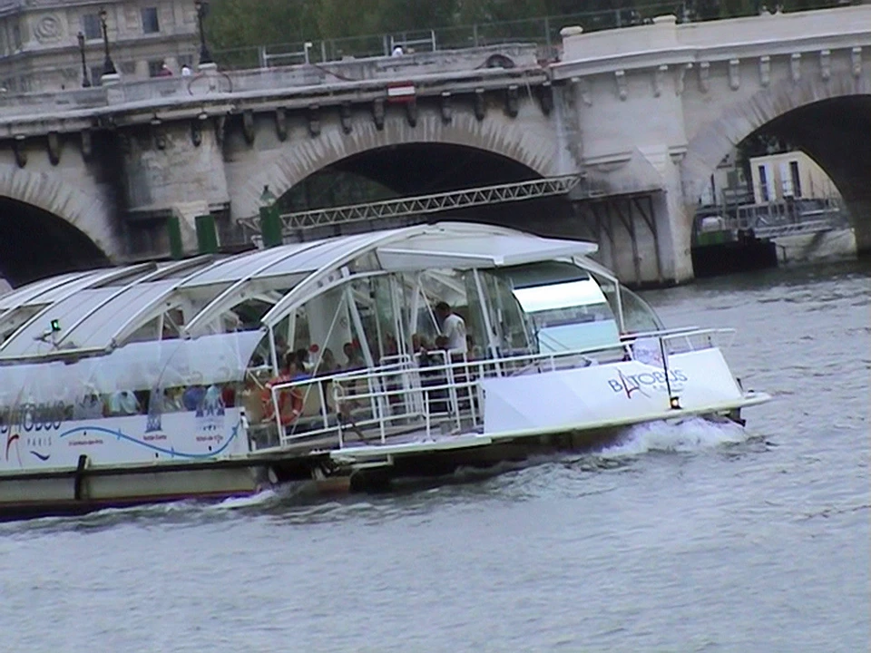 A Batobus cruises past on the Seine, Paris.