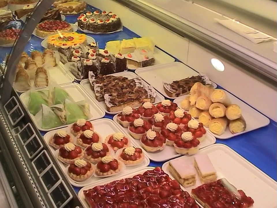 Delicious fruit pastries on the counter outside Migros, Laufen, 7.2 miles in
