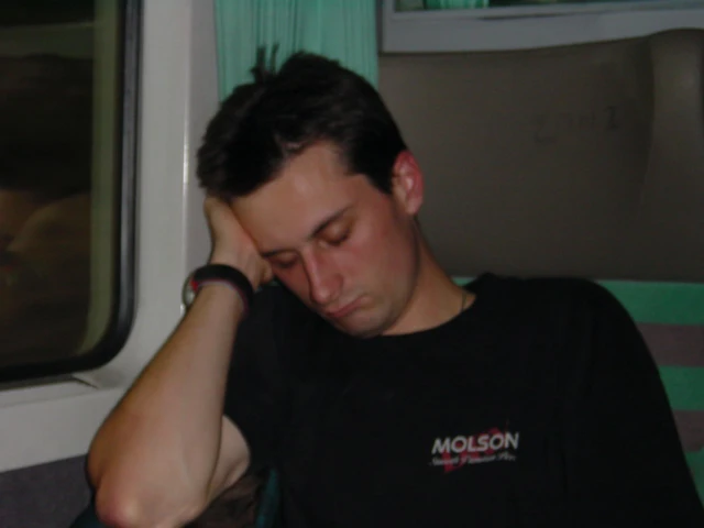 Tao looks rather tired on our long train journey from Paris to Basel.