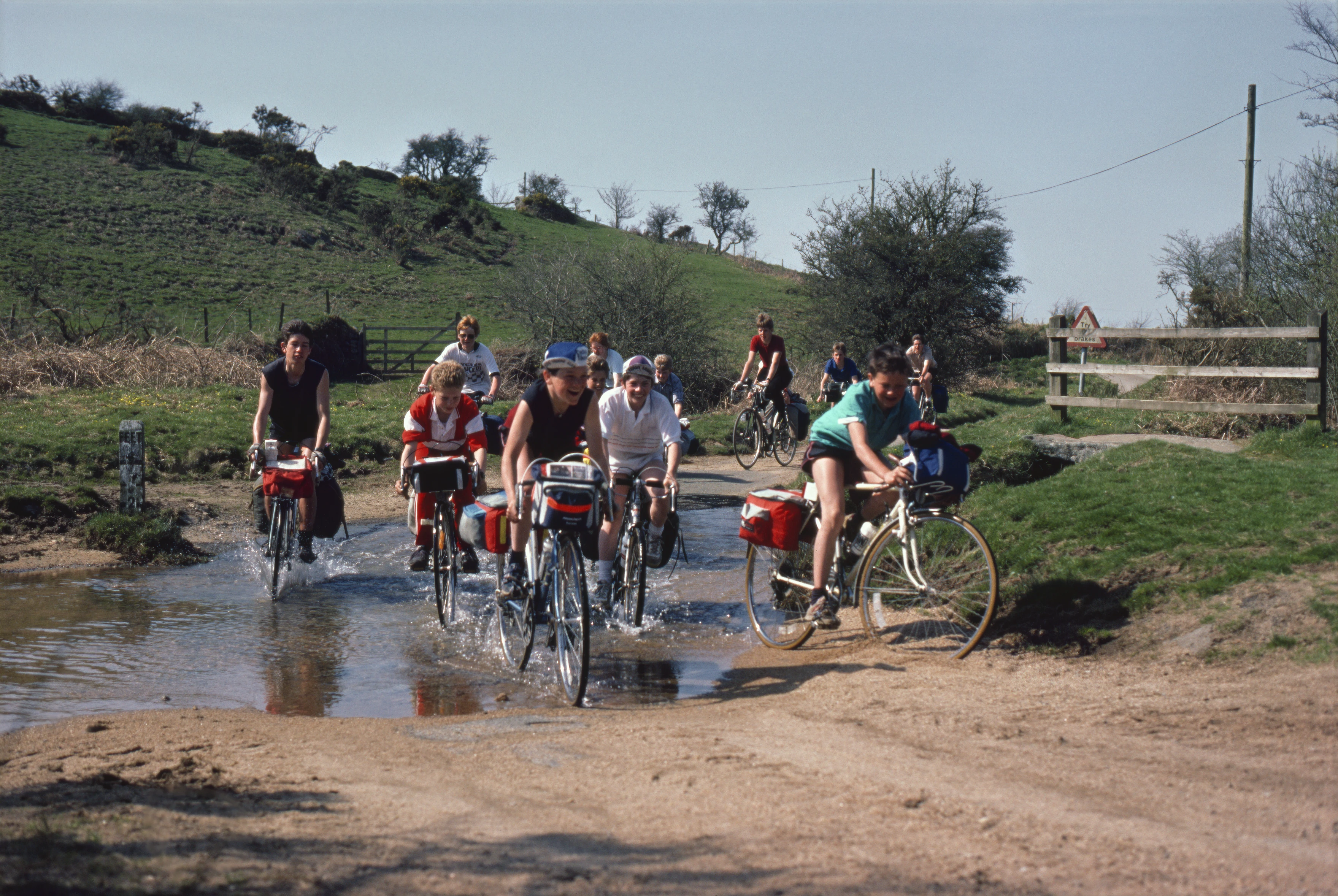 The whole group tackles the next ford beyond Trebray on Bodmin Moor.