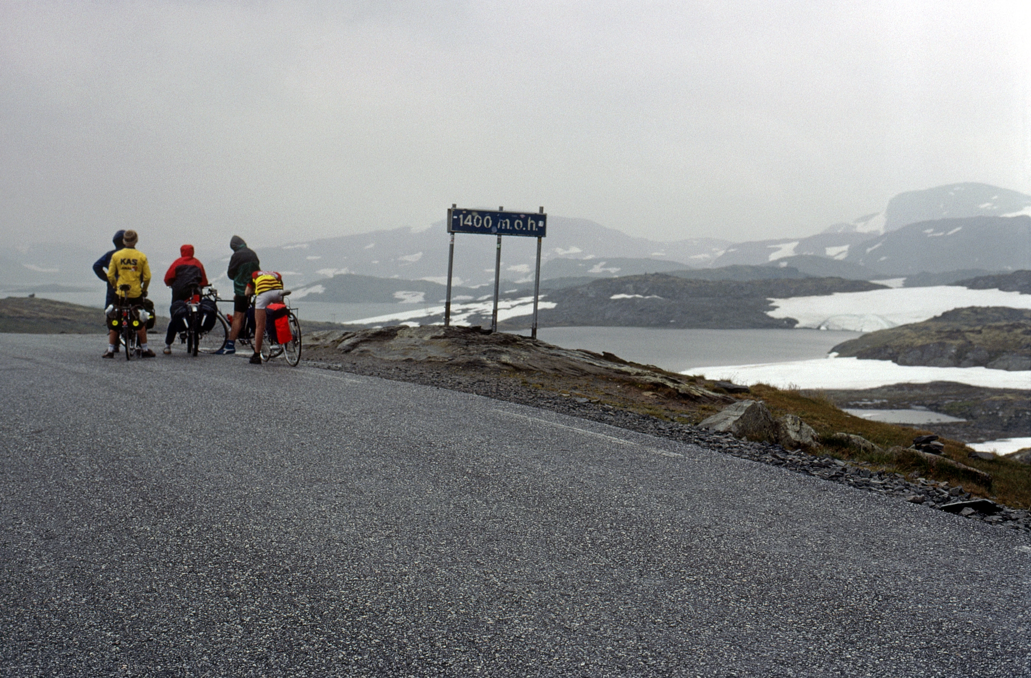 The group by the 1400m sign at Silja lake—higher than Ben Nevis! 16.5 miles.