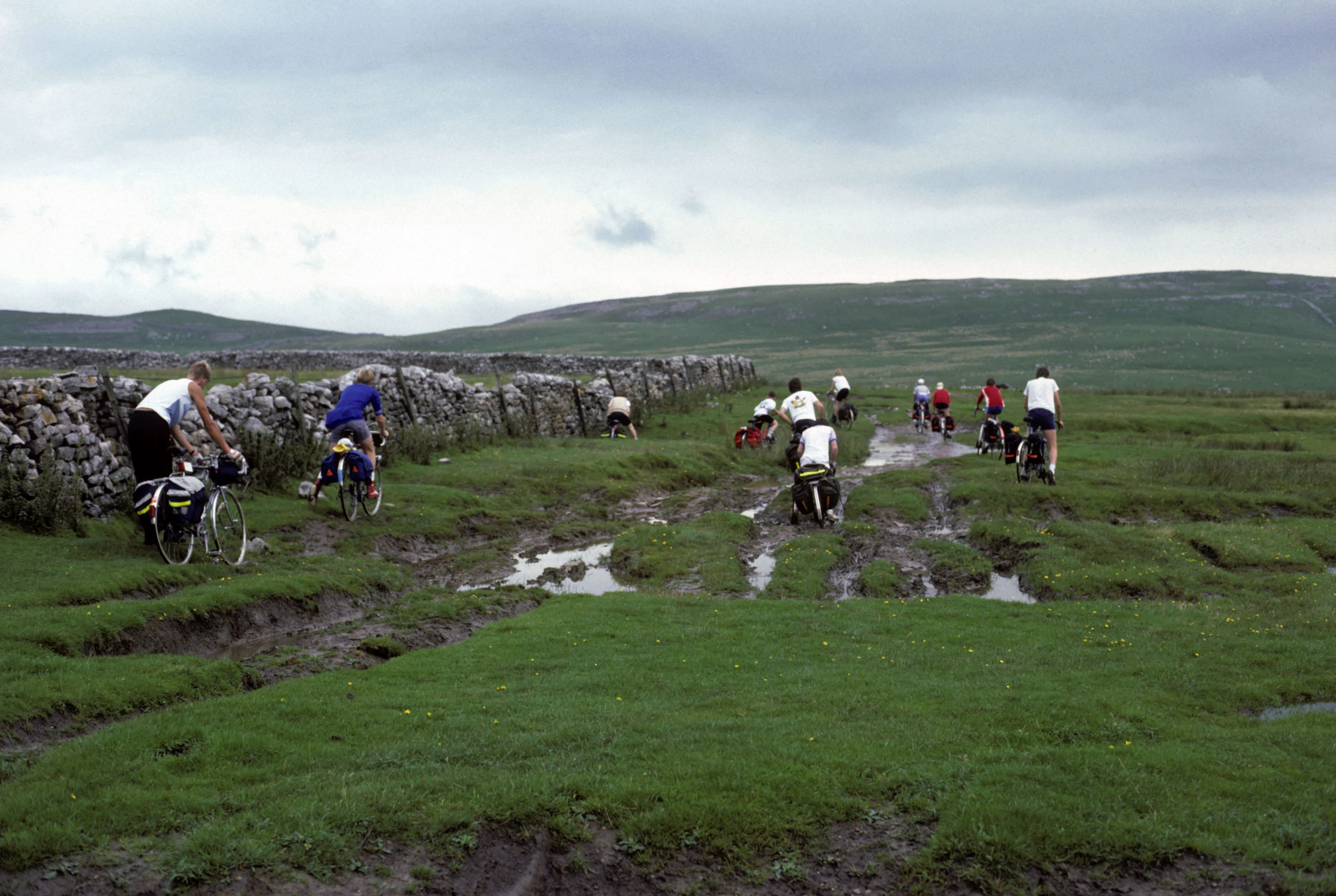 Picking lines through Mastiles Lane’s boggy ruts after relentless rain.