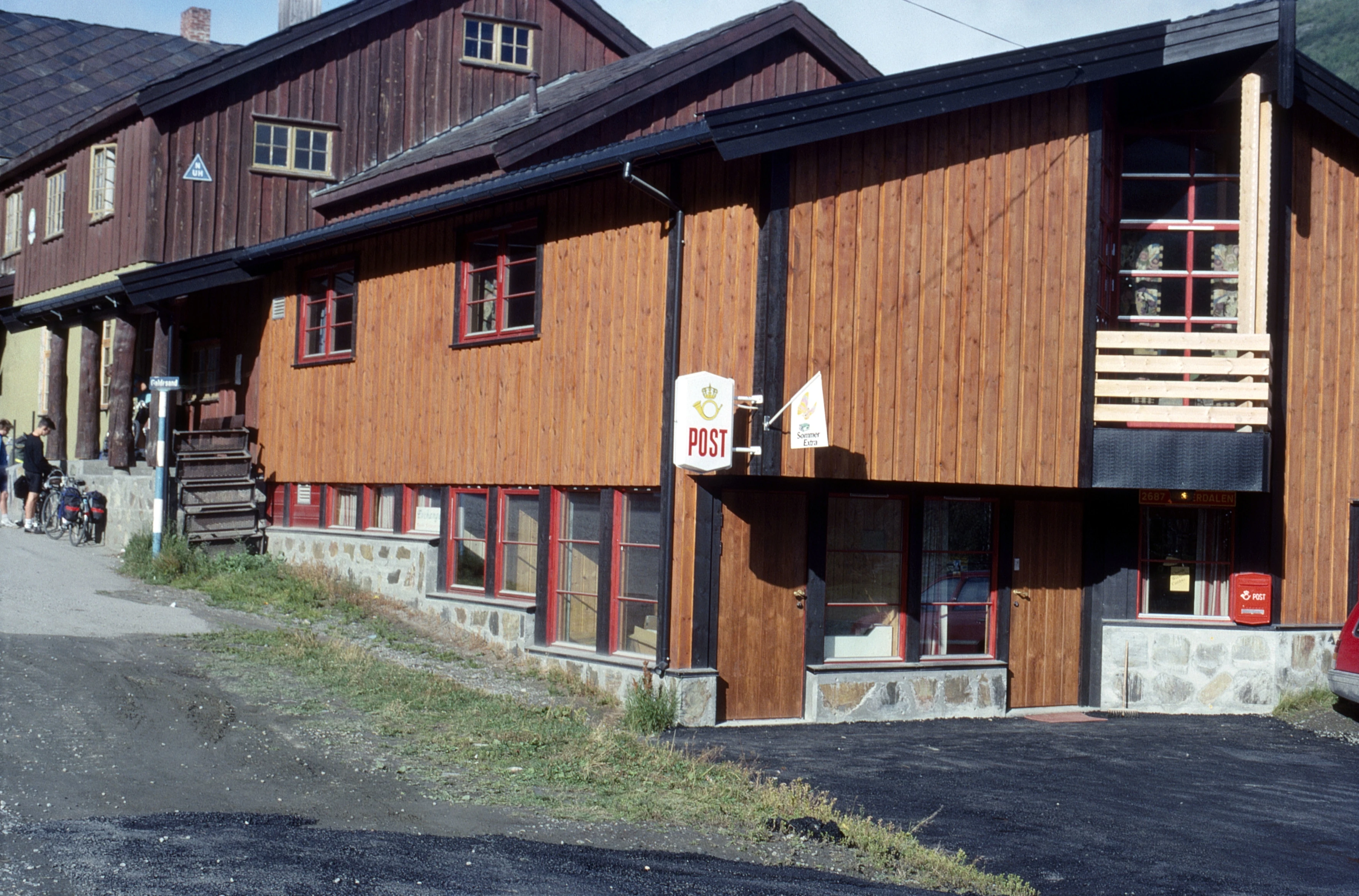 Another view of Bøverdalen youth hostel; our group almost ready. Post Office attached.