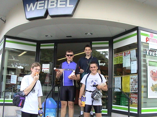 Emerging from Weibel supermarket, Spittlegasse, Büren.