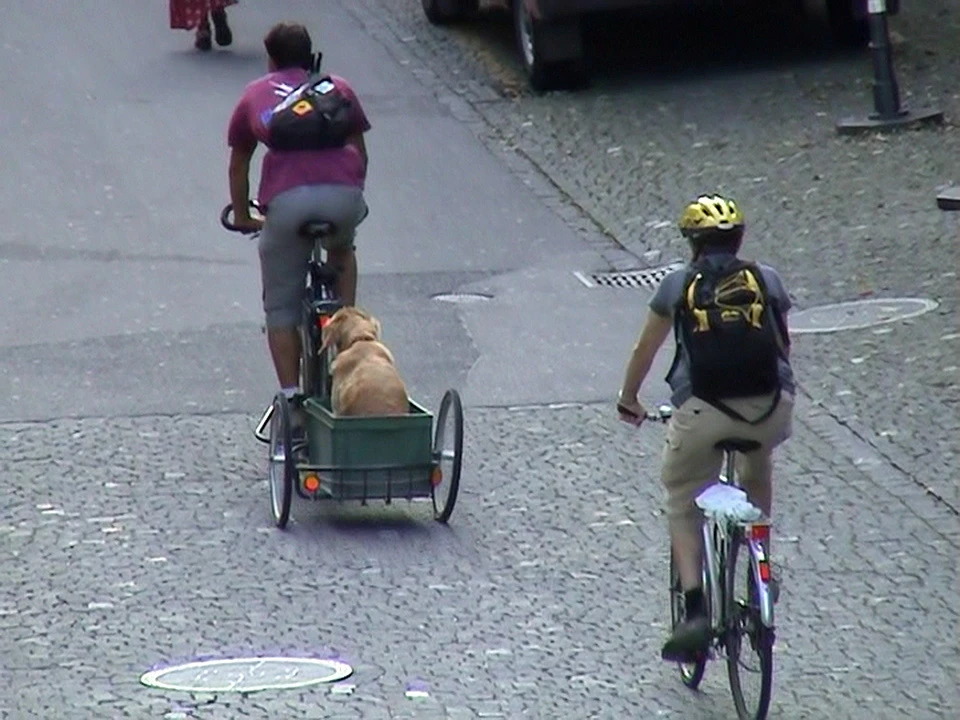 In Solothurn even dogs get towed—spotted from our hostel window.