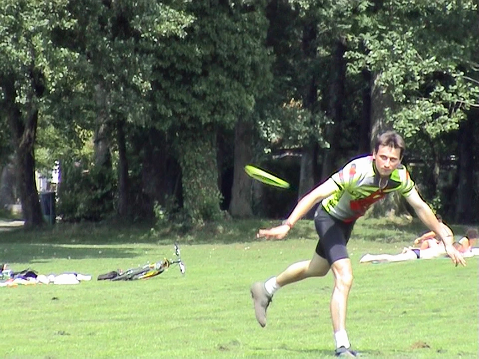 Frisbee fun at our Sutz‑Lattrigen lunch spot.