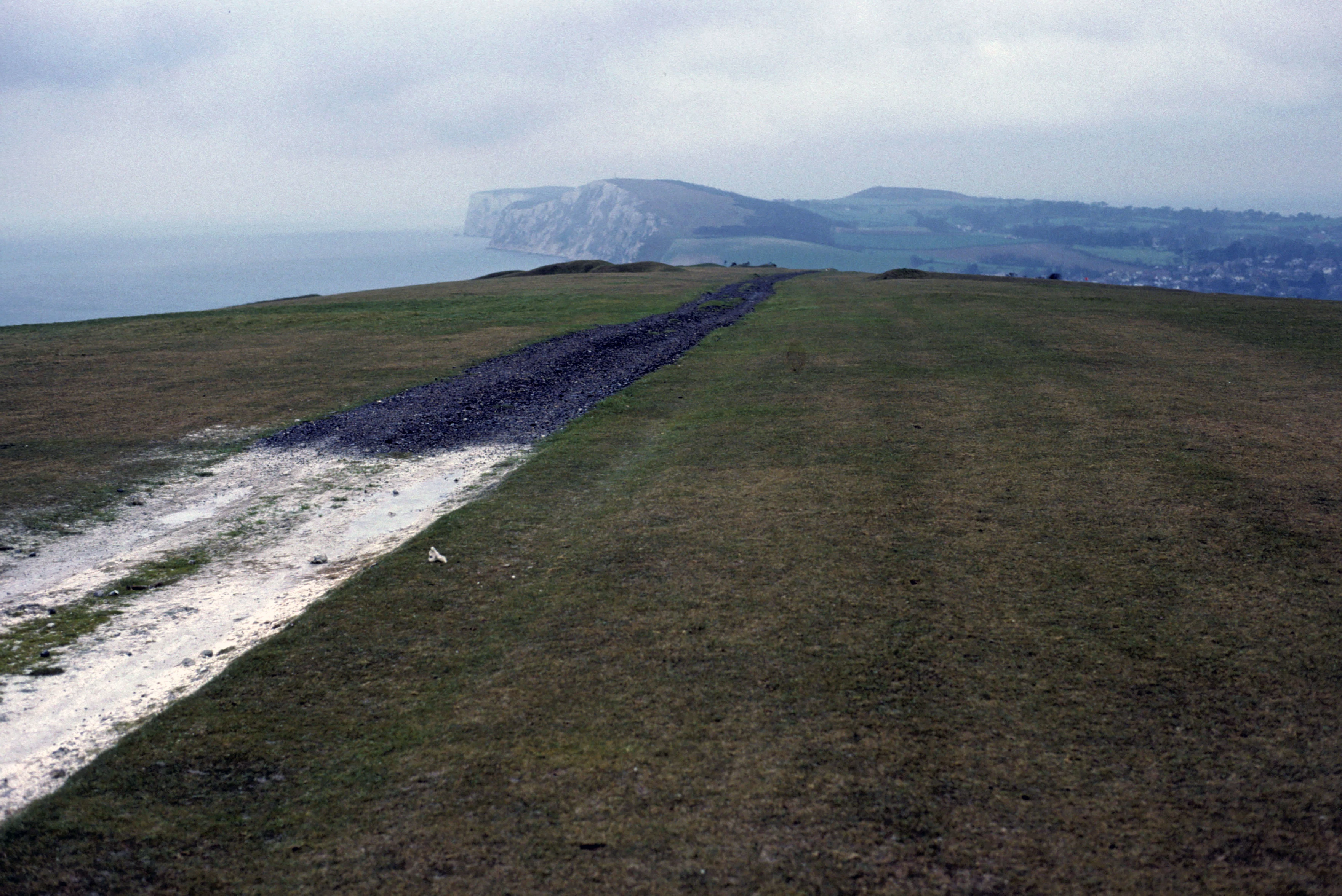 Westward panorama towards The Needles from the Tennyson Trail, East Afton Down.