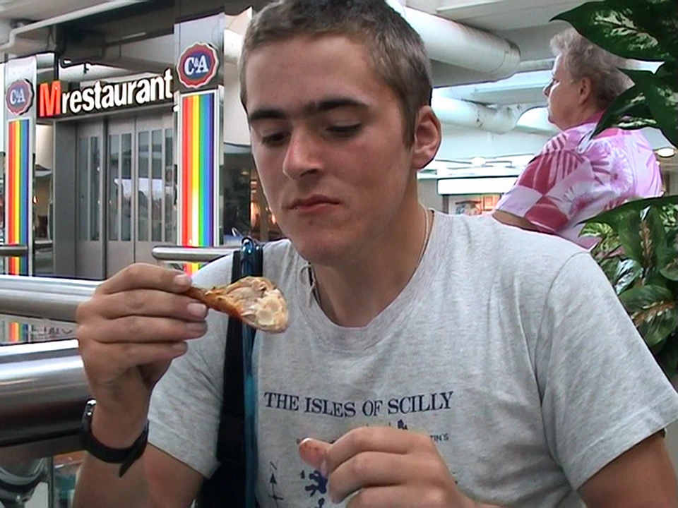 Luke enjoys chicken at the Marin Centre, Epagnier—37.1 miles in. Migros supermarket here too.