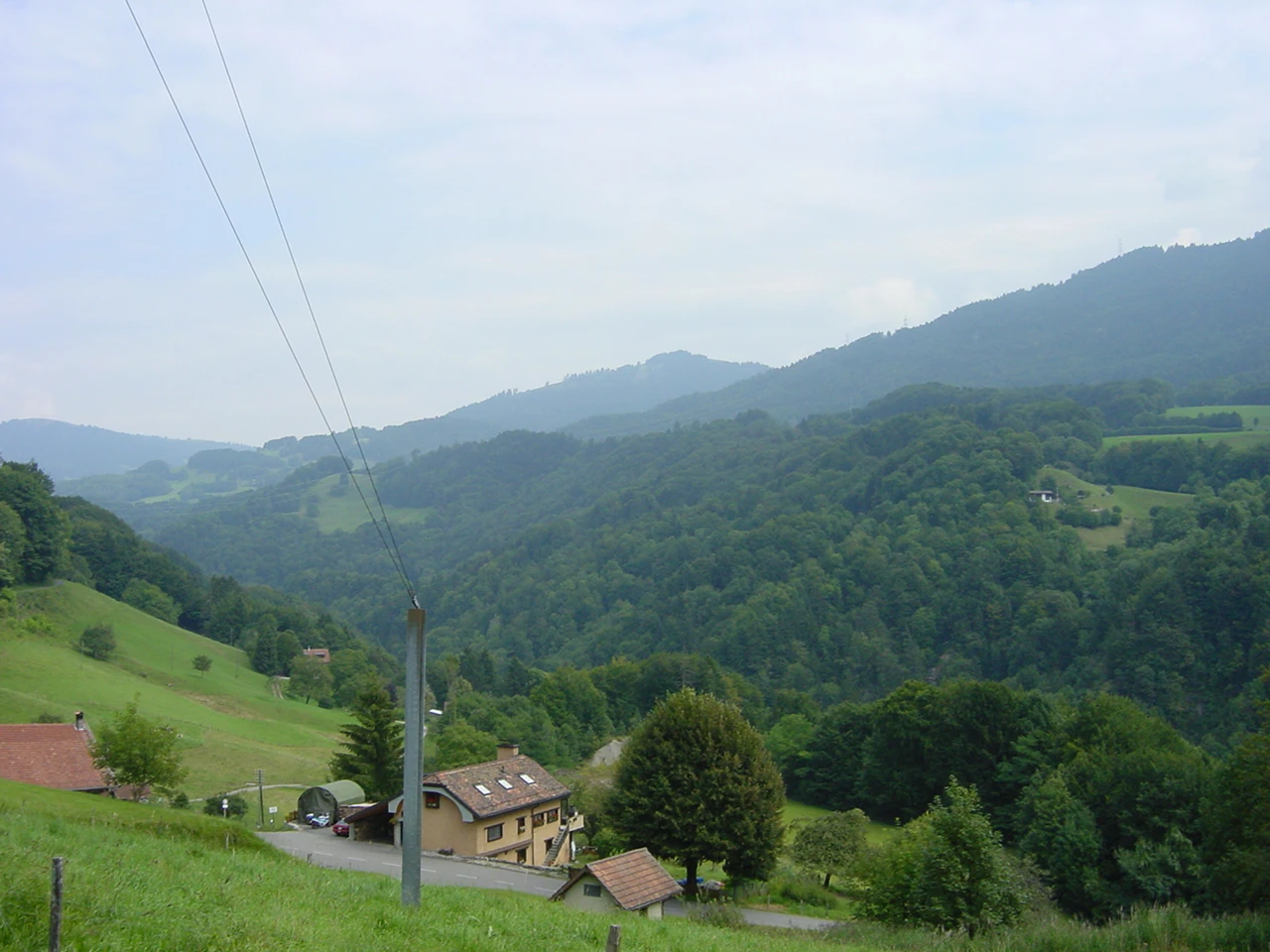 View from Route 9's second hairpin, Corsier-sur-Vevey, looking back to the Veveyse valley, 20.3 miles into the ride