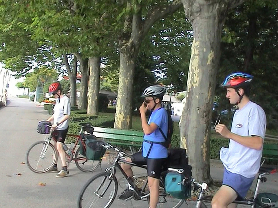 The group soak up Lake Geneva views at Place du Vieux-Port, Lausanne, 2.3 miles from the hostel