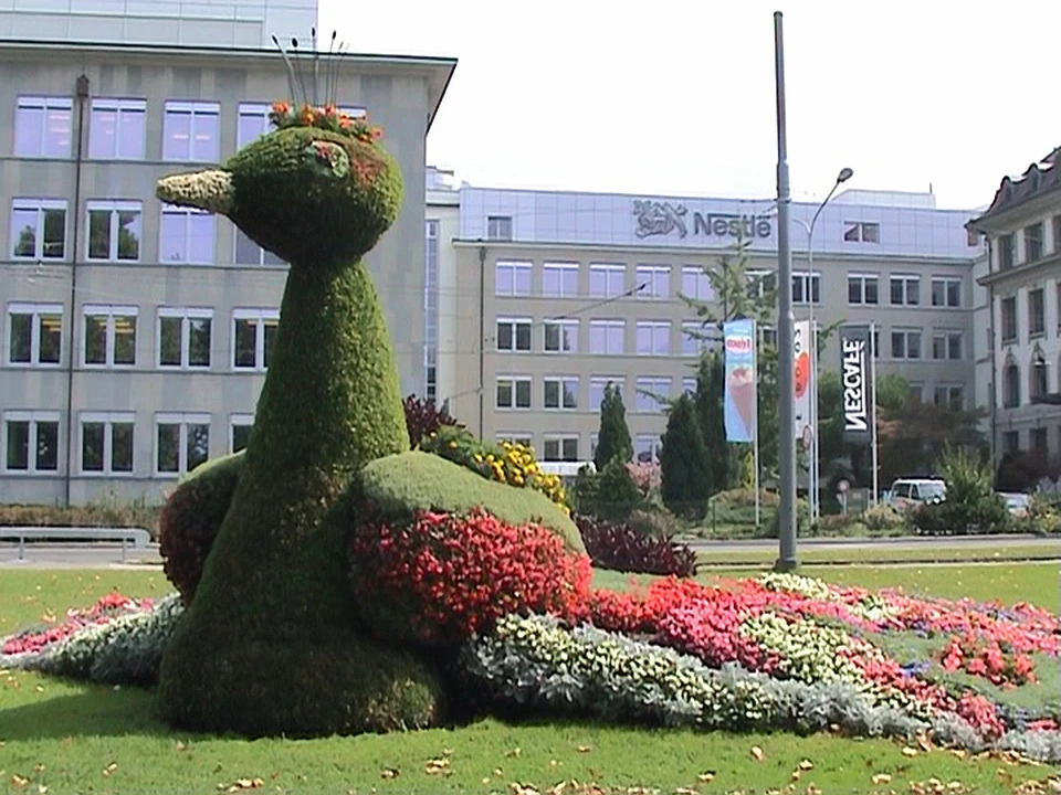 A quirky bird garden outside the Nestlé building, Quai Rousay, Vevey, 14.8 miles into the ride