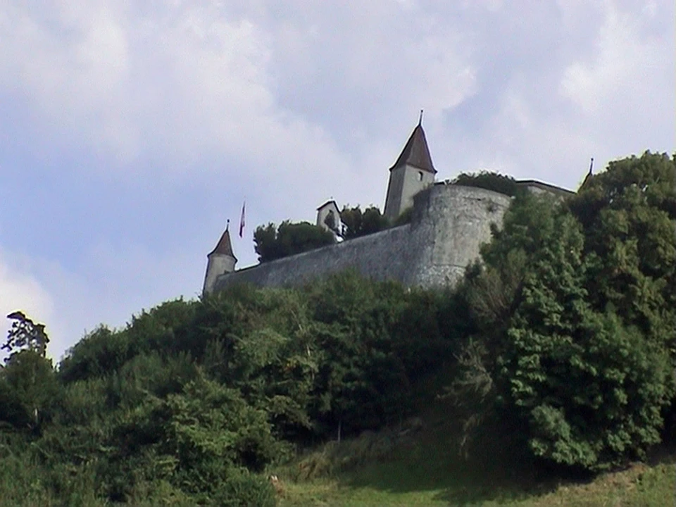 Château de Gruyères, seen from the approach to the village, 42.6 miles into the ride