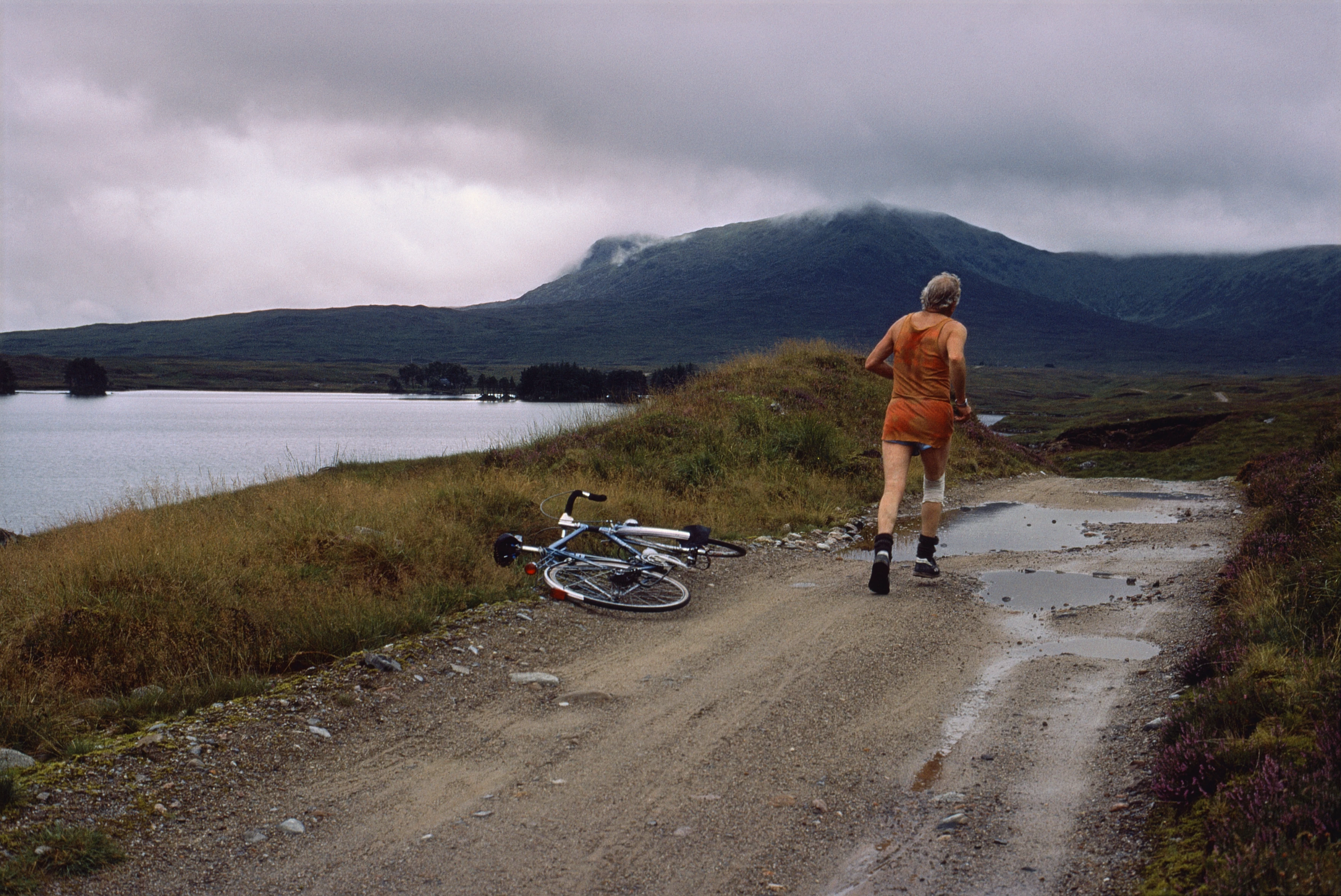Loch Ossian hostel warden running the hour-long lap of the loch.