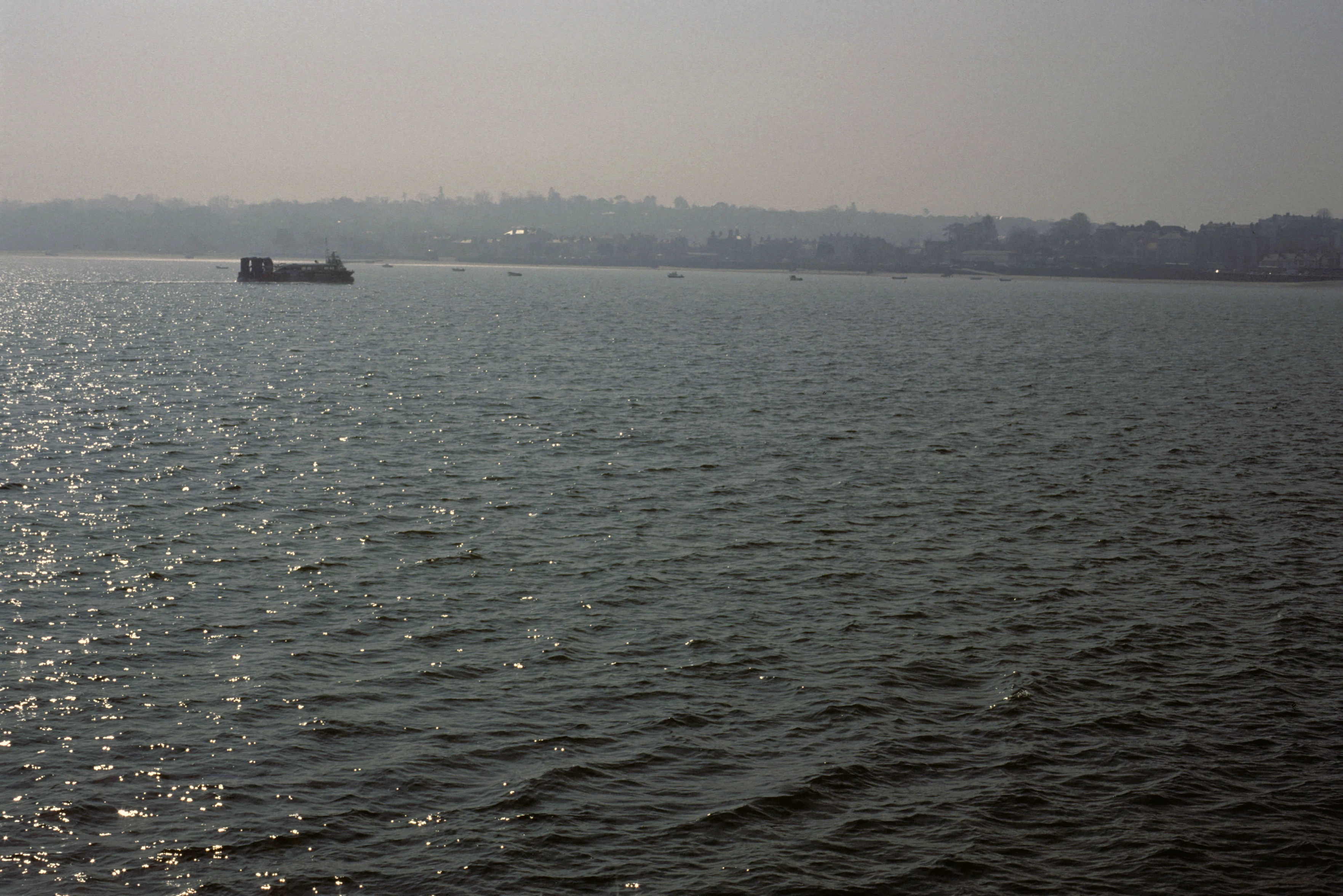 Front-row view from the superfast hydrofoil, Ryde to Portsmouth Harbour.